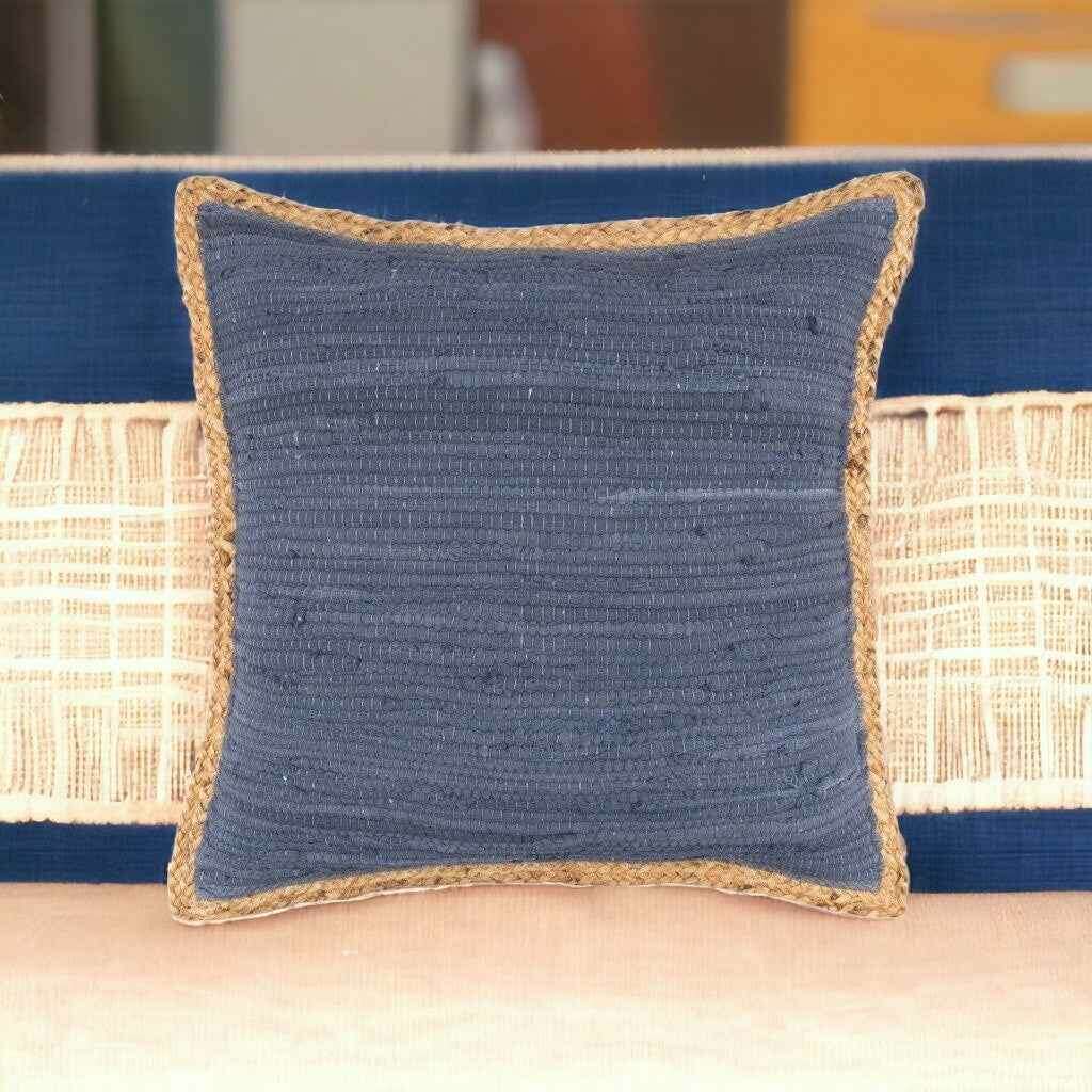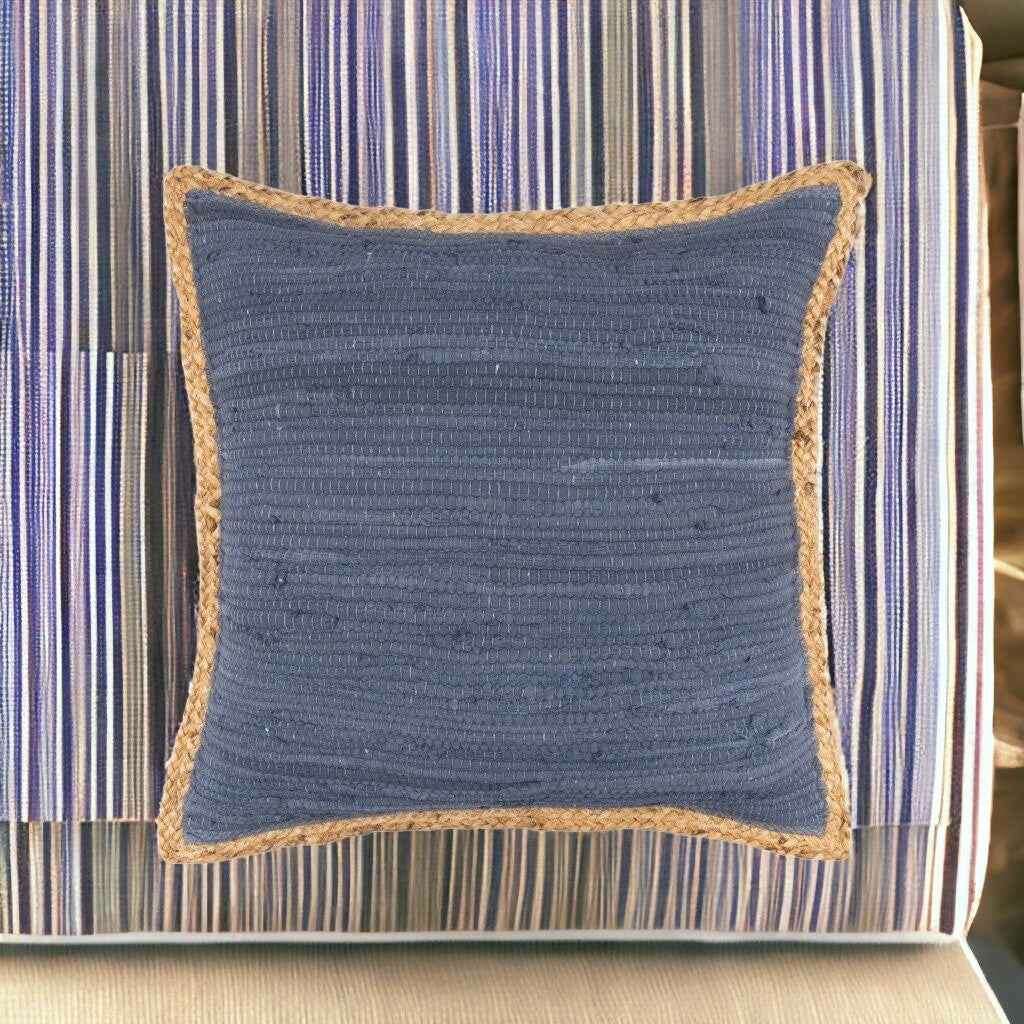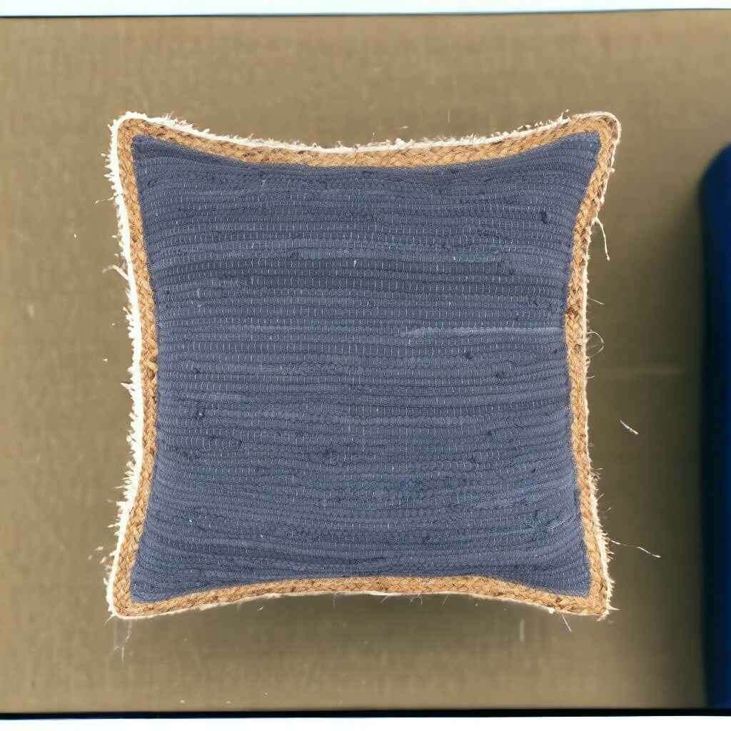 20" X 20" Blue and Beige Cotton Blend Zippered Pillow