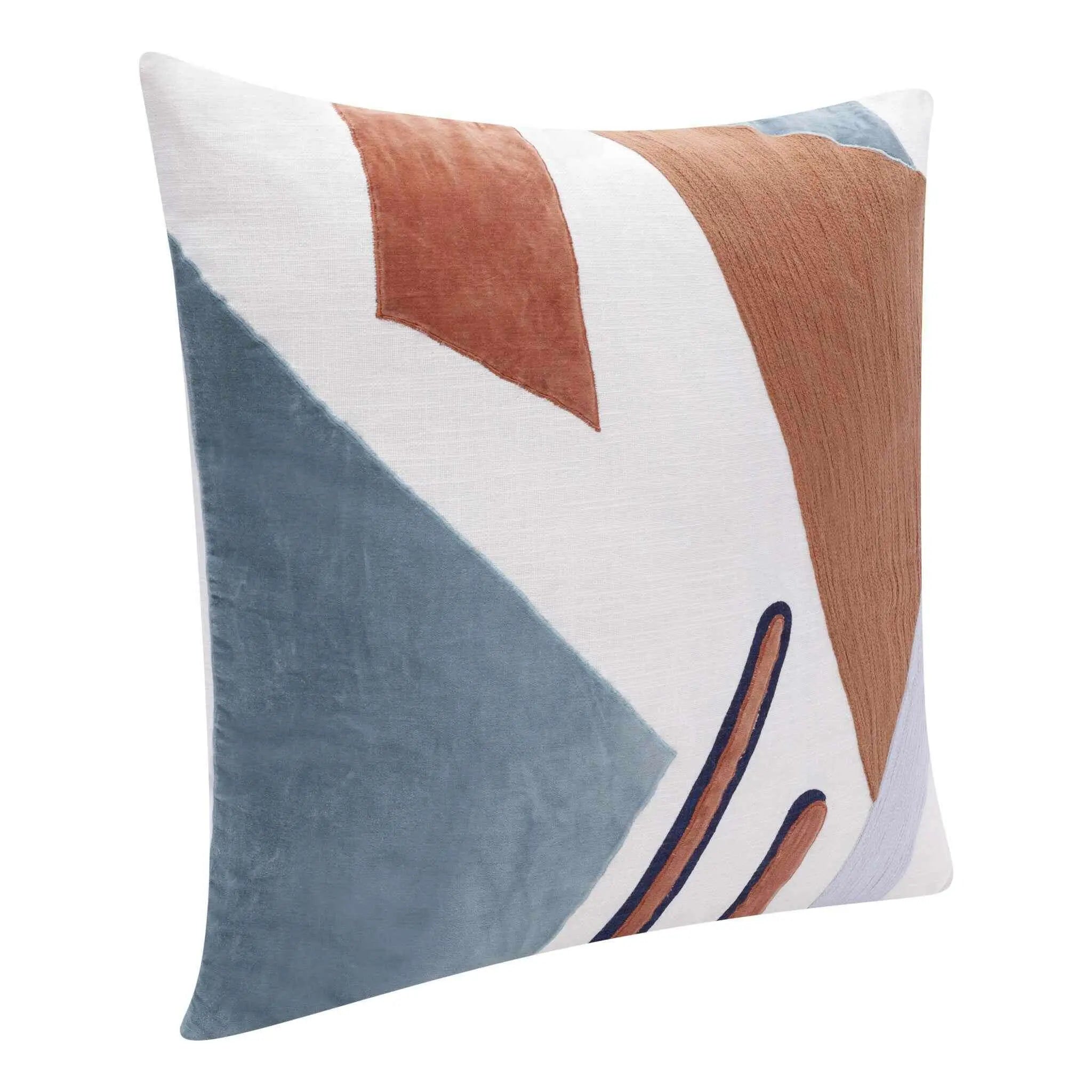 Add an air of fashion to your room and rejuvenate the space with this cute and fashionable 24" x 24" brown blue and off-white 100% cotton abstract zippered pillow. This brown blue and off-white hued piece represents quality construction, expertly made from premium 100% cotton that is not only long lasting but super soft to the touch as well. Decorative throw pillows not only add color and dimension to your space but can be comfy and supportive when you are lounging and cuddling as well. A great decorative accessory for your favorite chair, to accent your sofa, or to use as part of your bed ensemble. 4" H x 24" W x 24" D
