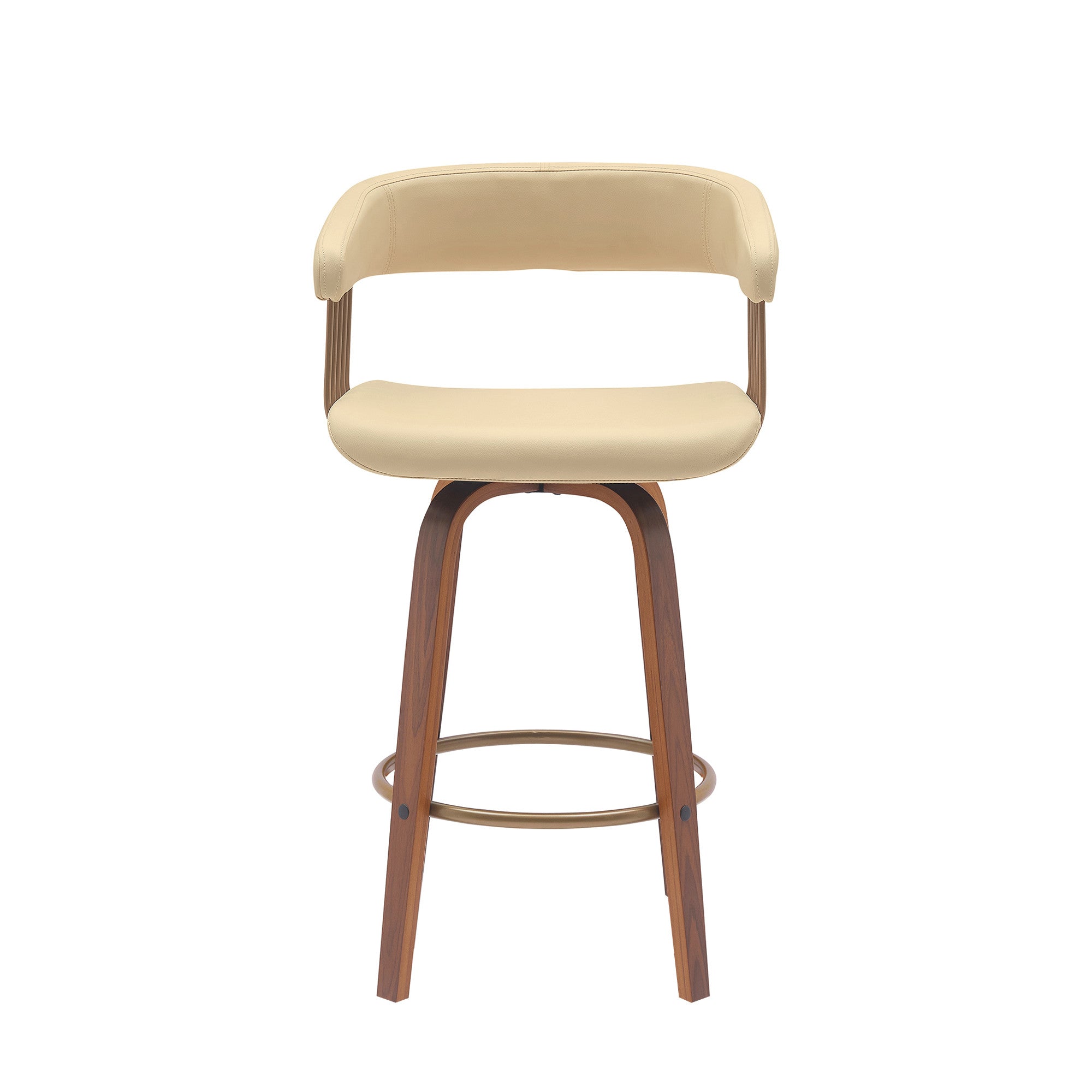 26" Cream And Wood Brown Faux Leather Swivel Counter Height Bar Chair Skip to content