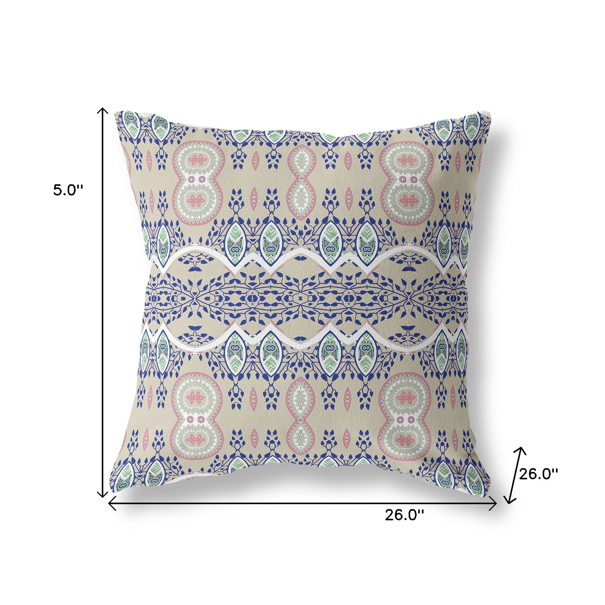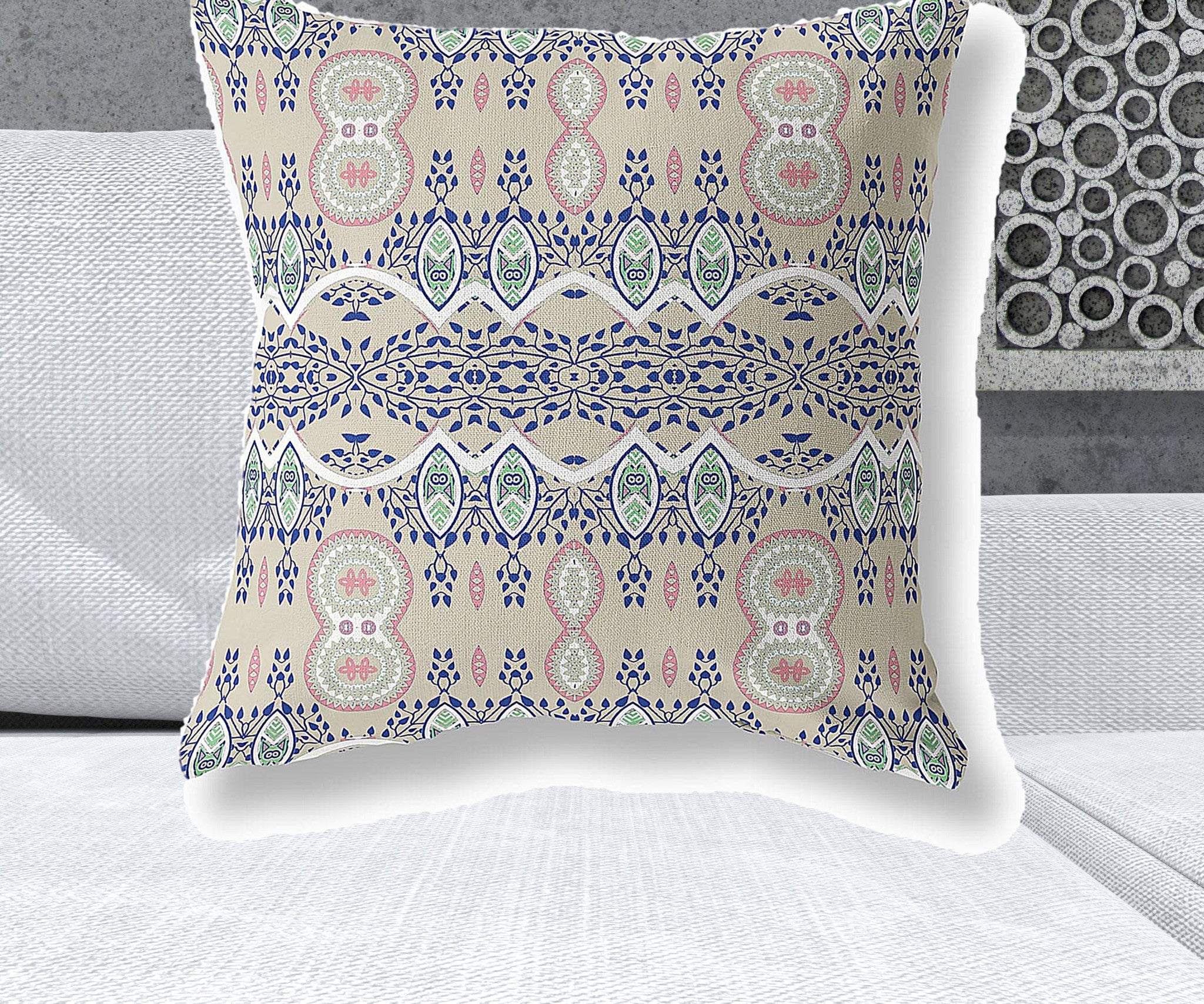 26" X 26" Beige And White Blown Seam Paisley Indoor Outdoor Throw Pillow
