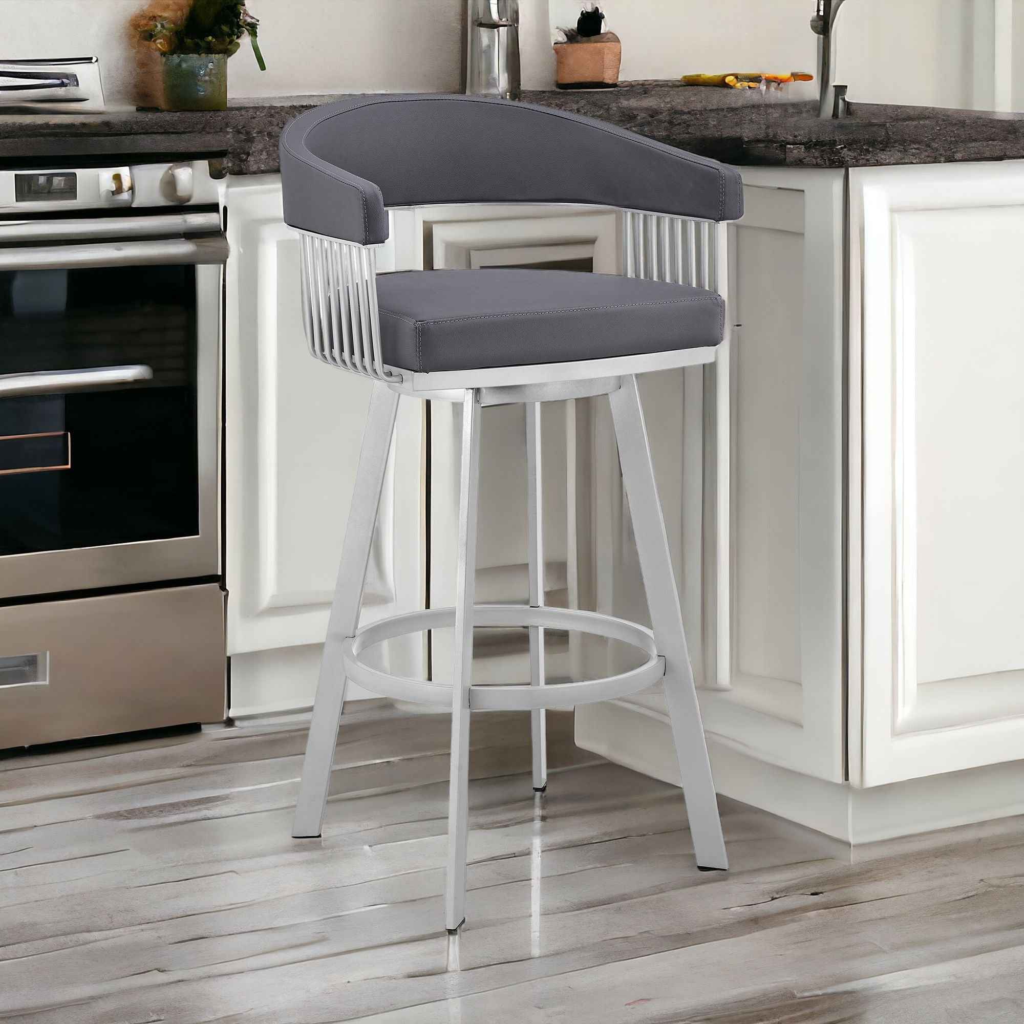 29" Slate Gray And Silver Iron Swivel Low Back Bar Chair - Skip to content