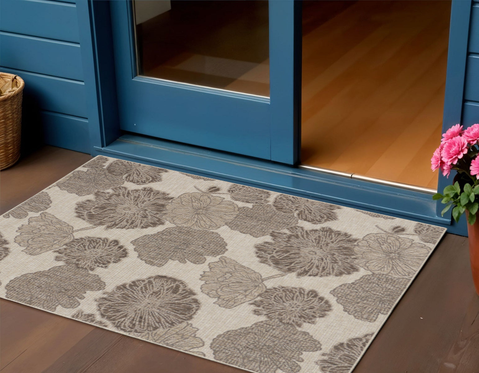 3' X 5' Natural And Ivory Floral Indoor Outdoor Area Rug