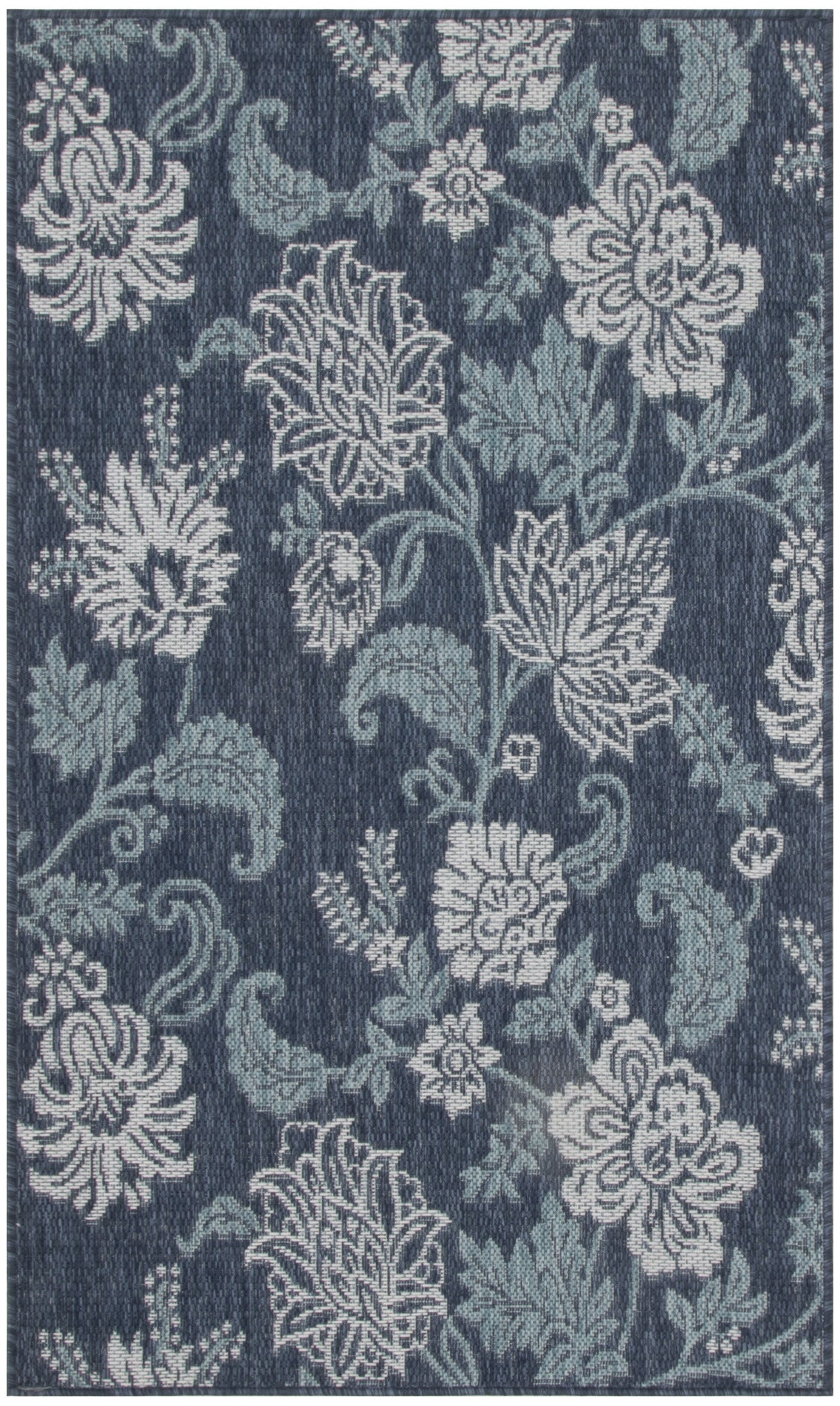 This 3-foot x 5-foot navy blue and ivory floral indoor outdoor area rug, is a great way to add warmth to a room. This rectangle shaped rug features a floral design that will work well both indoors or out. A classic shape marries with good looking design for your living room, hall, bedroom, porch, patio, or poolside. Versatile in use, durable, and easy to maintain, this rug is an ideal solution to add a decorative and inviting touch to your indoor or outdoor space. 36-inch h x 60-inch w x 0.3-inch d.
