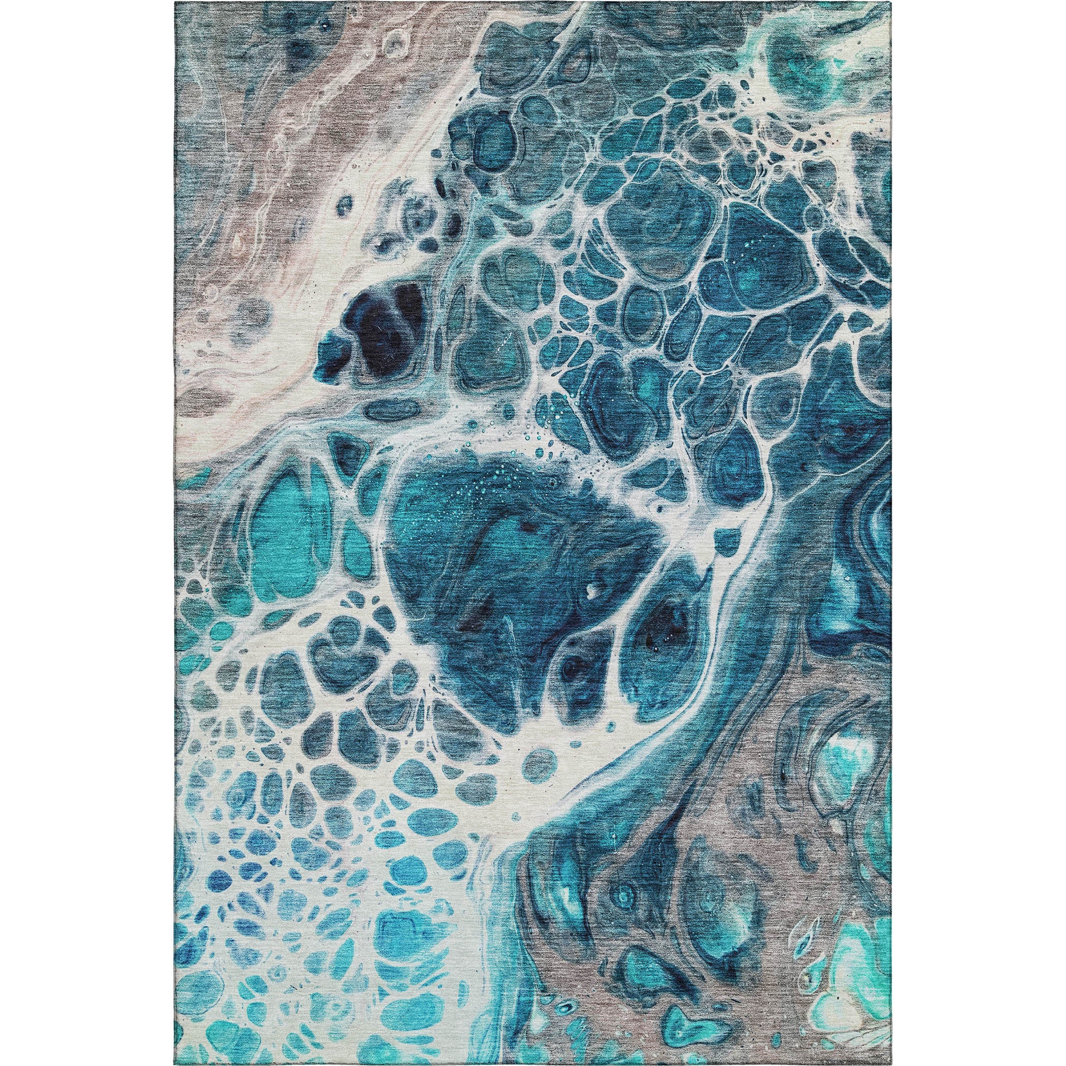 Set an inviting tone in your space with this 3-foot x 5-foot teal ivory and gray abstract washable area rug with uv protection. Ideal for spaces with kids and pets, this rug is stain resistant to help repel dirt and spilled liquids. Built to last, this rug crafted from polyester fibers is known for its durability and long lasting appeal. Rugs are a great way to showcase your style, hide imperfections, warm your home and reduce noise. This smaller sized, transitional styled rug is just what you need for your walkway, bedside, in front of door, cabinet, refrigerator, or chair. 36.00-inch h x 60.00-inch w x 0.39-inch d.