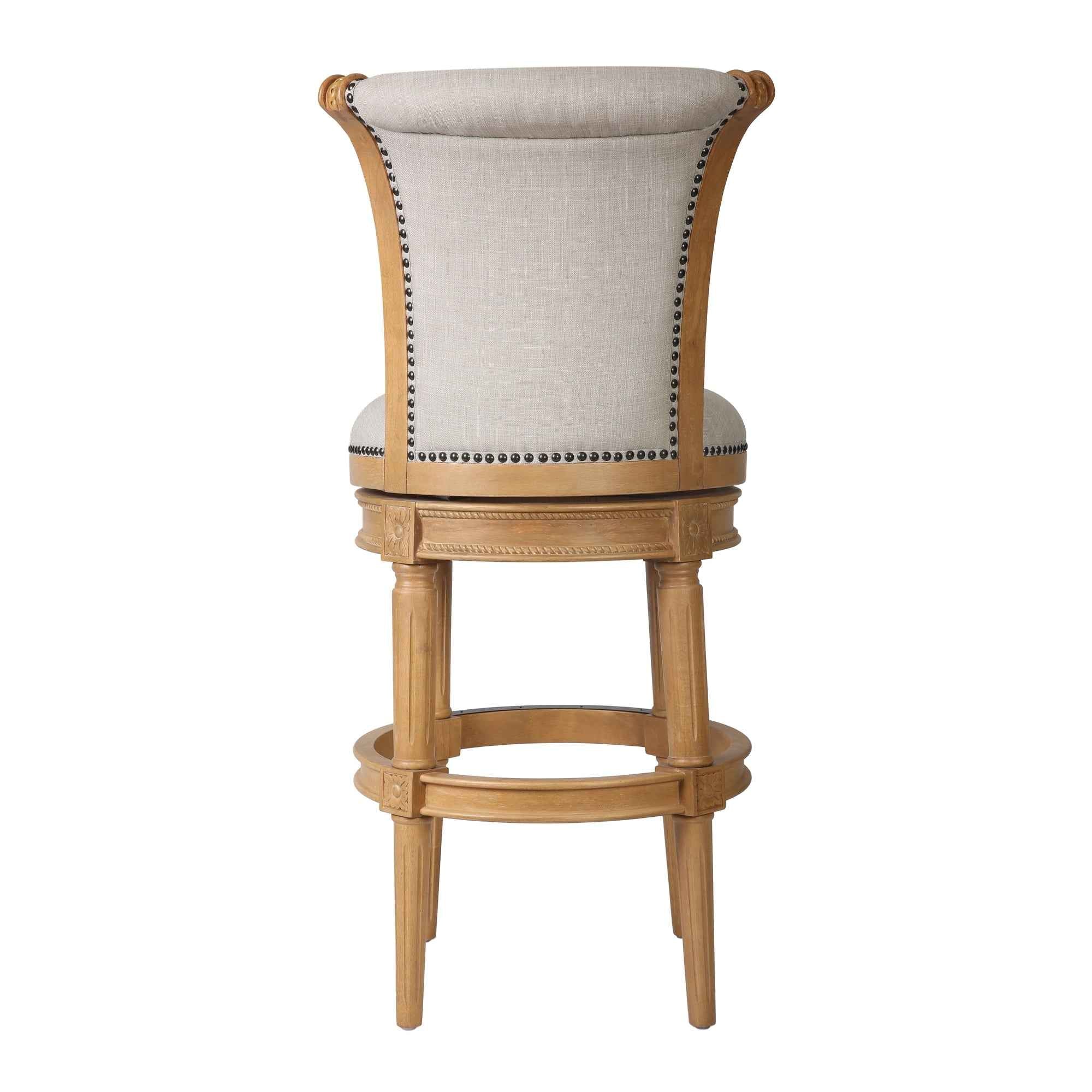 30" Beige and Natural Fabric and Solid Wood Bar Height Swivel Bar Chair Skip to content