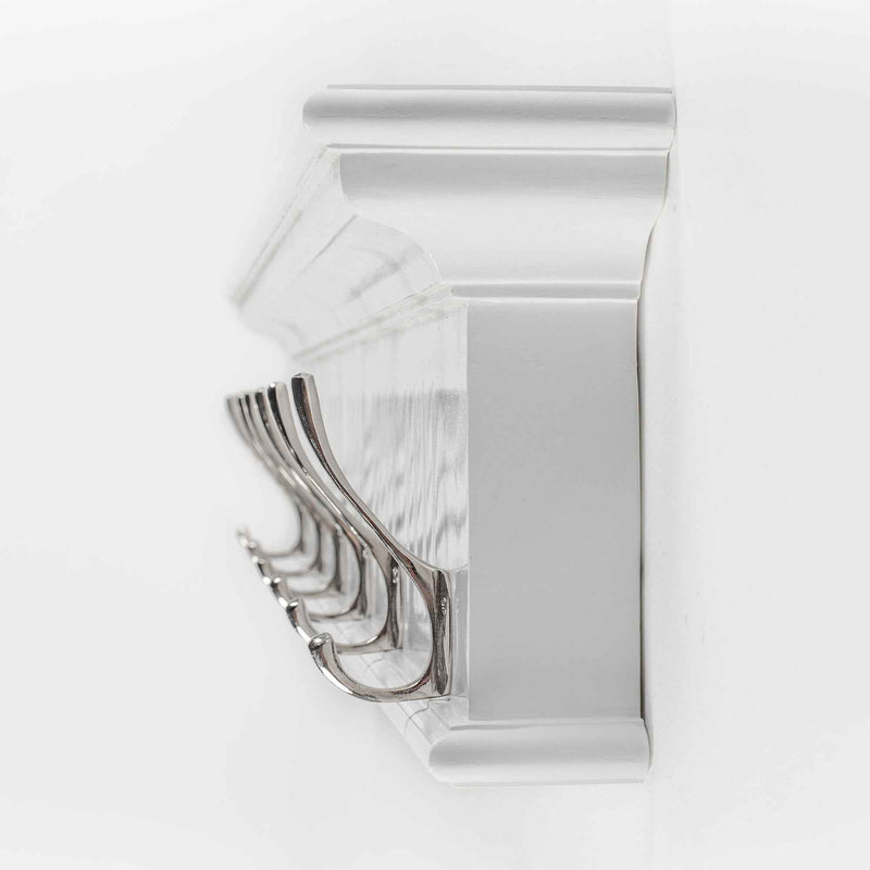 39" White Solid Wood Six Hook Wall Mount Coat Rack