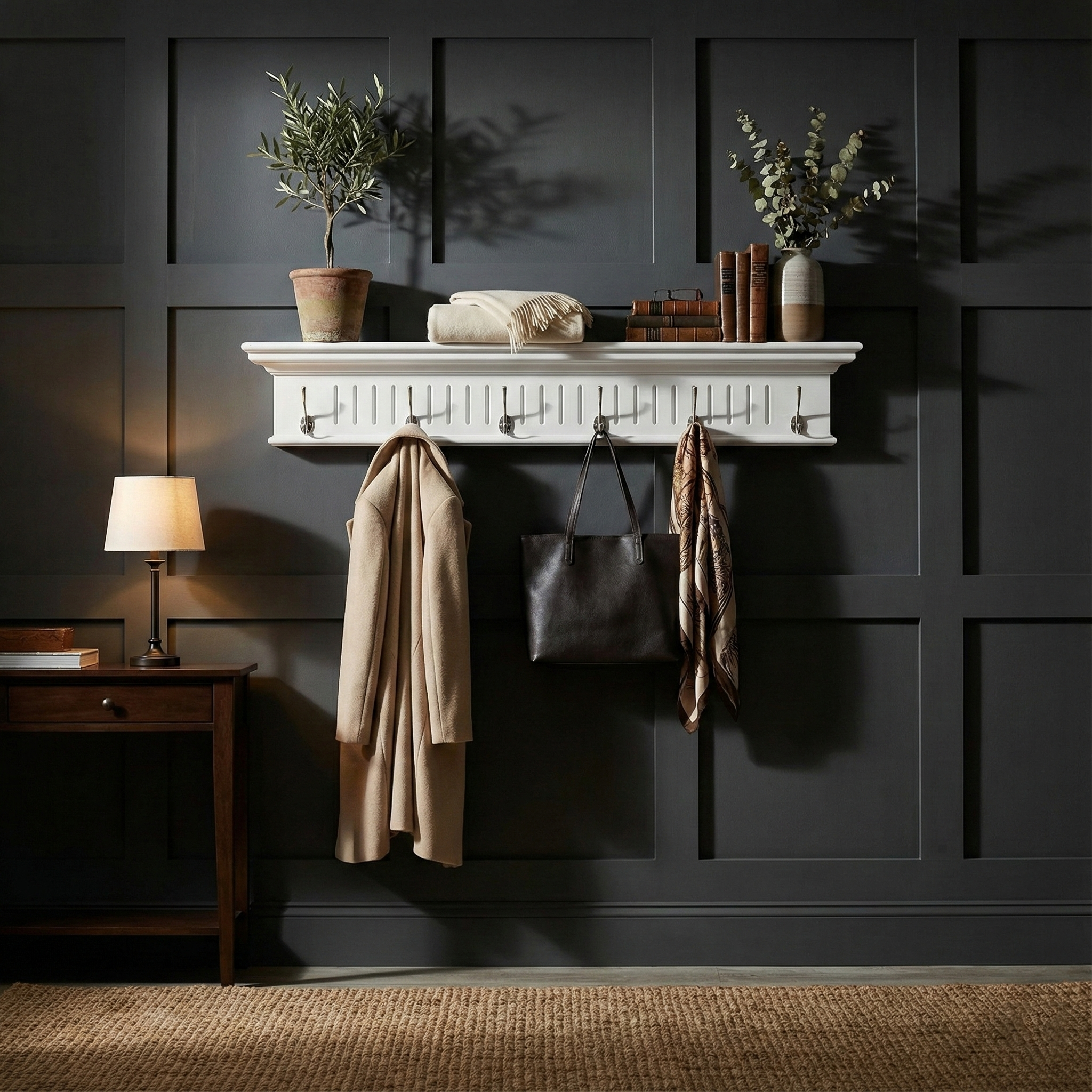 39" White Solid Wood Six Hook Wall Mount Coat Rack Skip to content