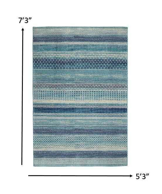 5' X 7' Navy Blue Southwestern Power Loom Area Rug