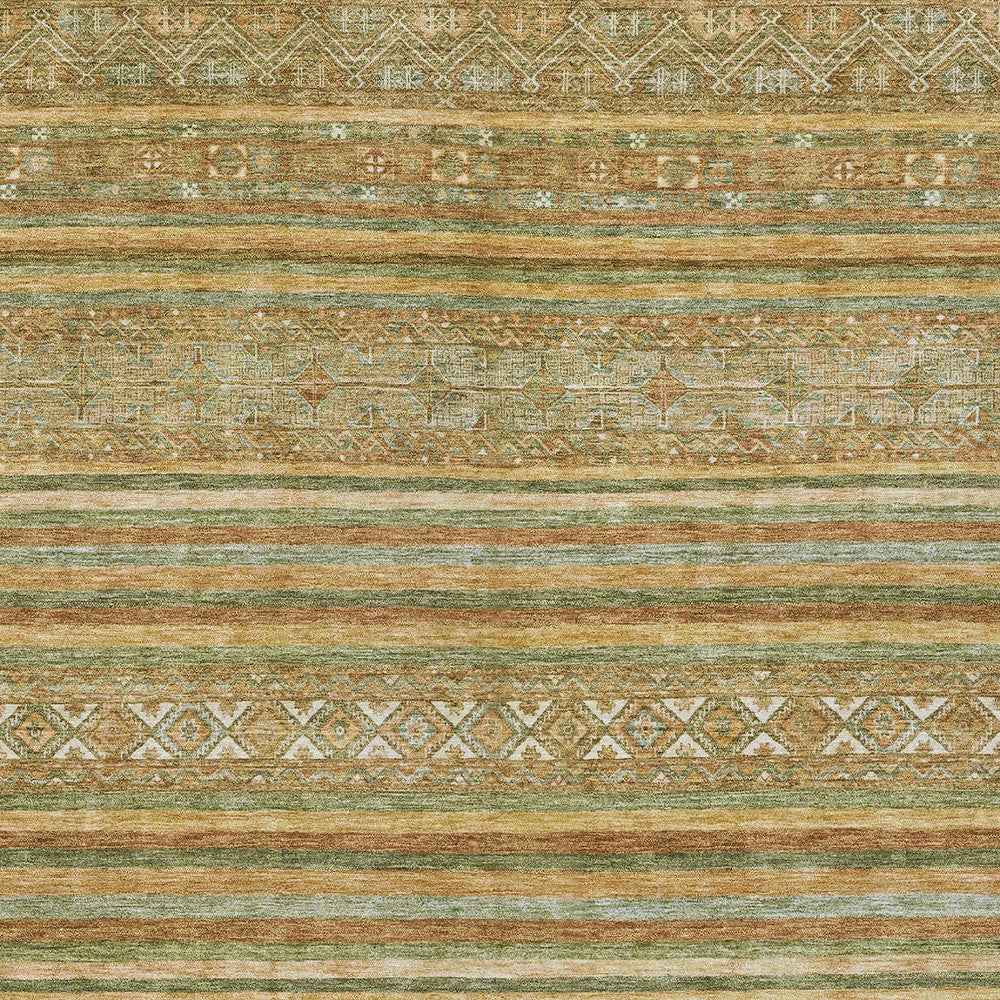 5' X 8' Artichoke Green Gold And Beige Southwestern Washable Indoor Outdoor Area Rug