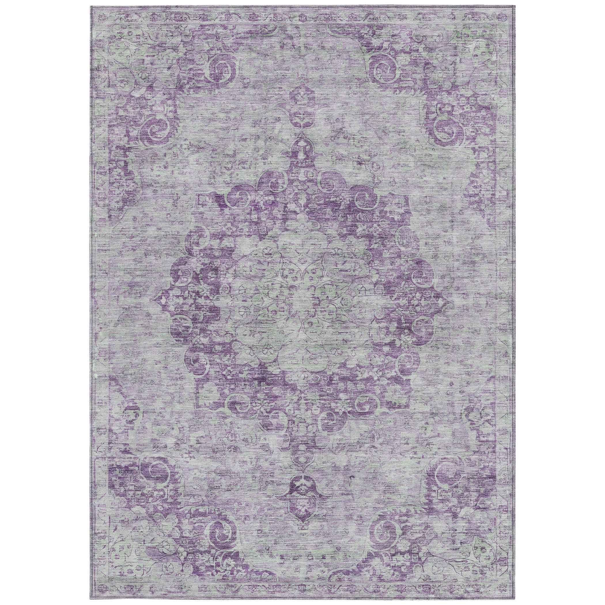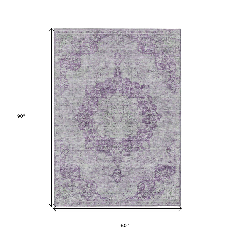 5' X 8' Purple Floral Medallion Washable Indoor Outdoor Area Rug