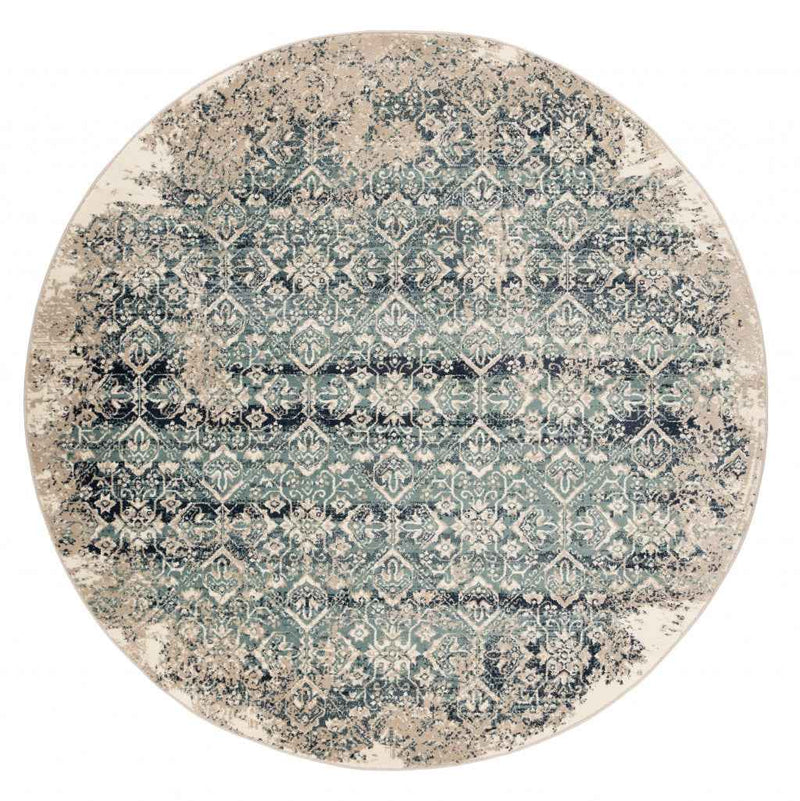 Add great coloration and comfortable texture to your space with this 8' blue and ivory round oriental dhurrie area rug. This geometric round shaped rug features a oriental pattern in blue and ivory that combines a good looking print with a unique and updated shape. The mix of shape, color, and design gives this rug refreshing visual interest. Ideal for spaces with kids and pets, this rug is stain resistant to help repel stains and spilled liquids. Place this area rug against a hardwood or tile floor and it will enliven your living space with style and sophistication. 0.5" H x 91" W x 91" D