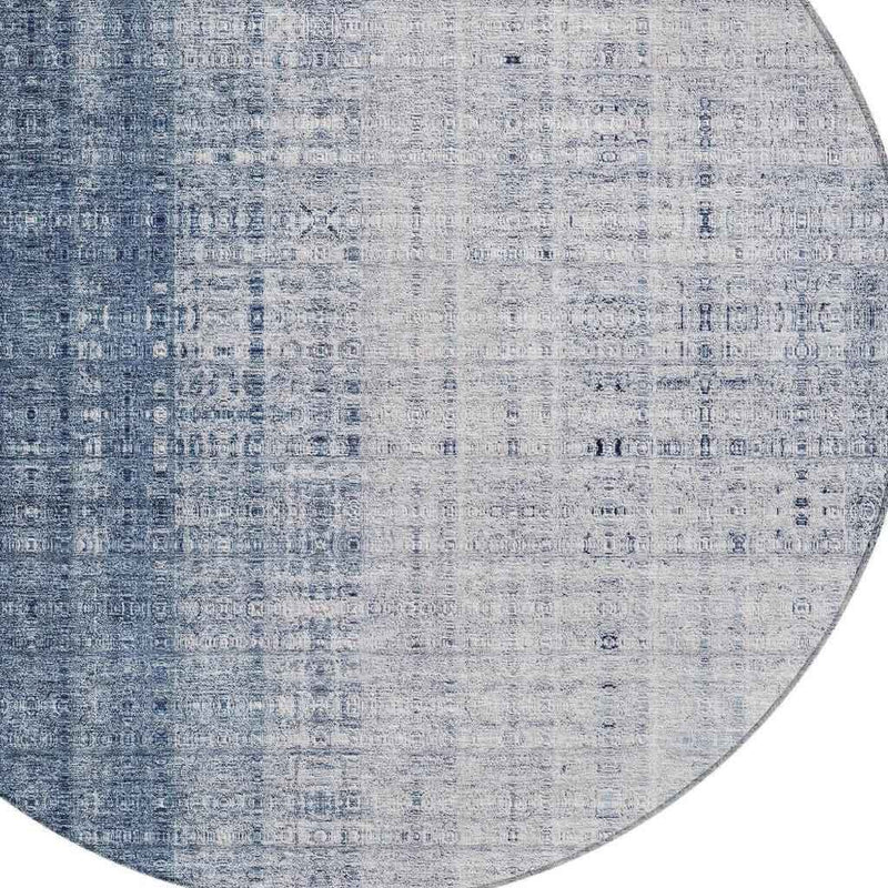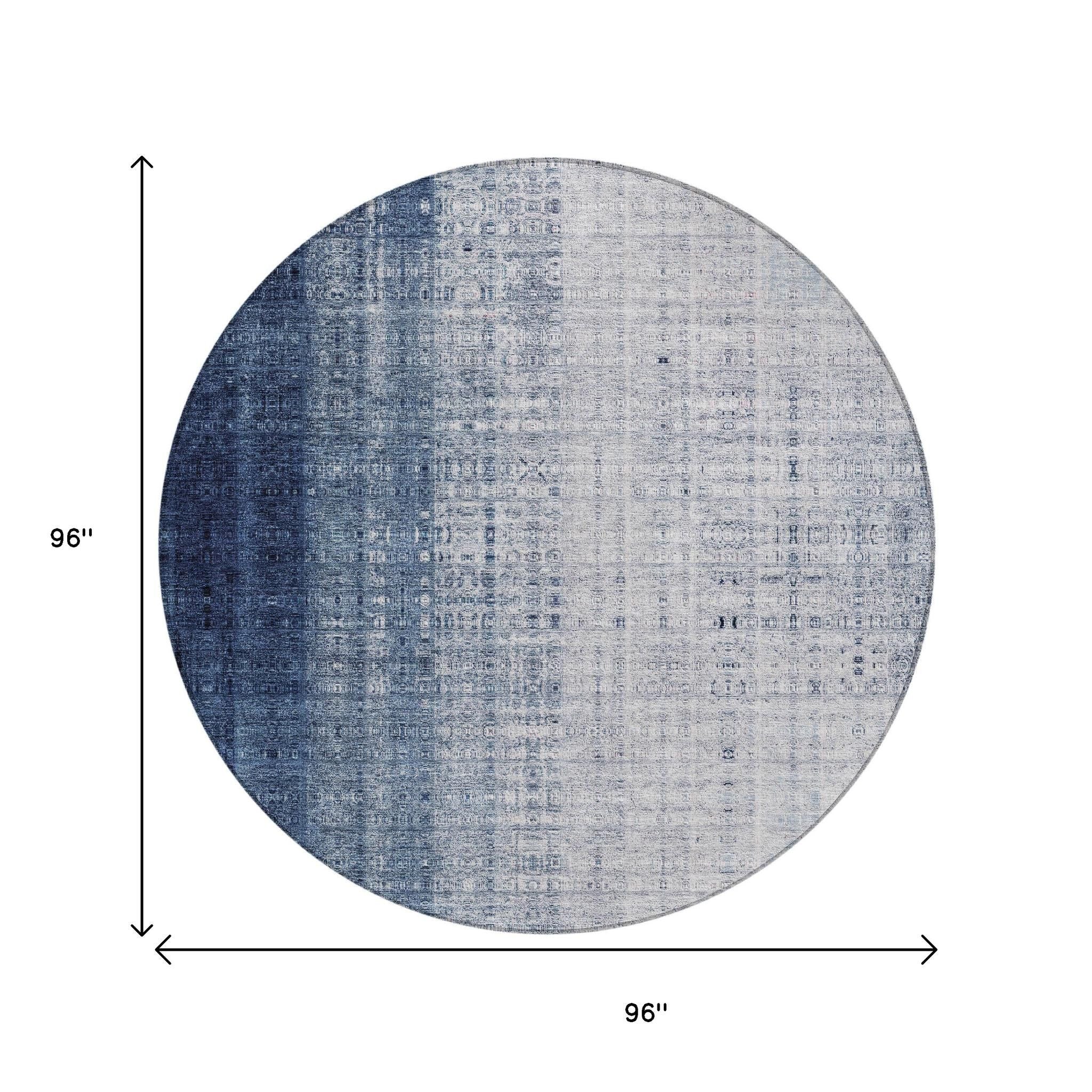 8' Blue And Ivory Round Striped Washable Indoor Outdoor Area Rug