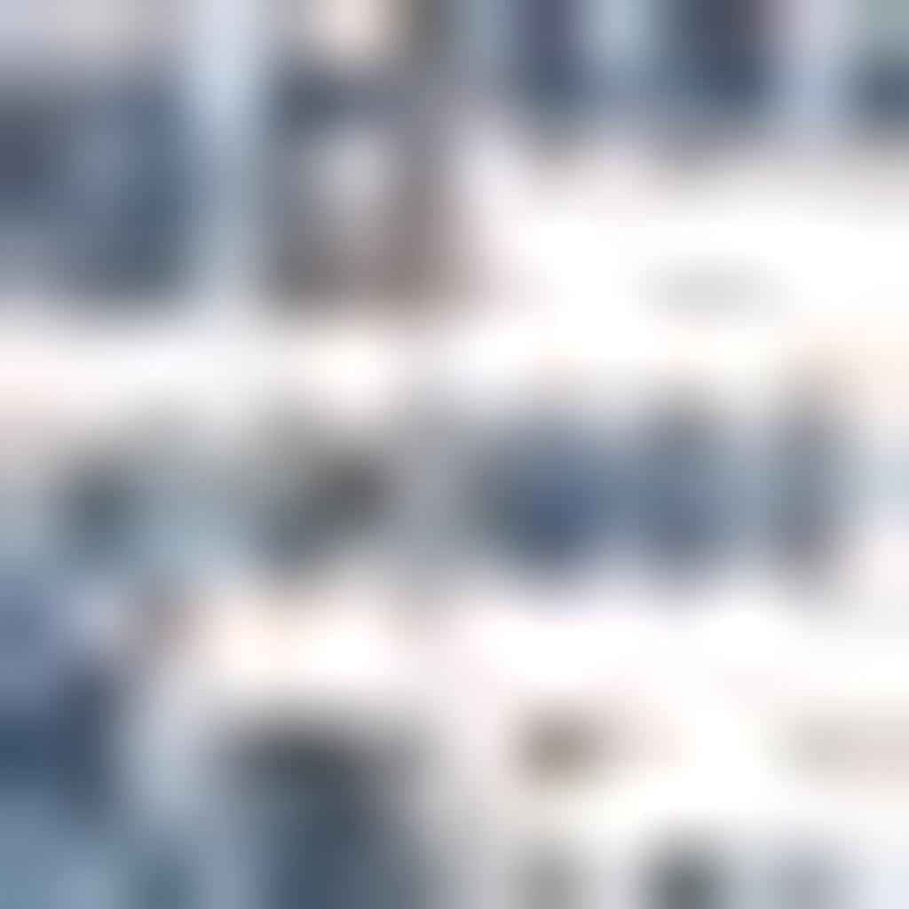 8' Blue And Ivory Square Striped Indoor Outdoor Area Rug