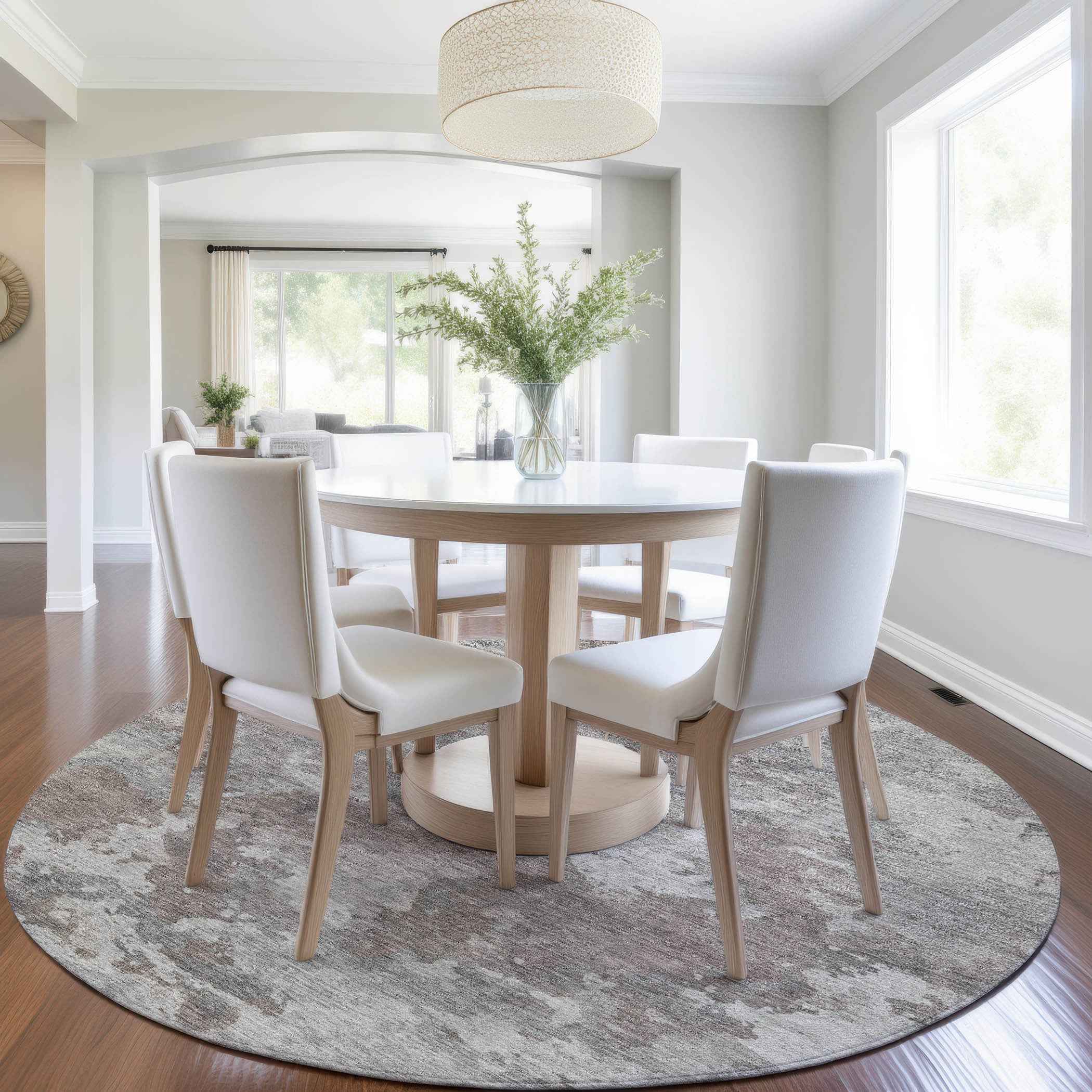 Add some artistry to your room with this 8-foot brown and ivory round abstract washable indoor outdoor area rug. This geometric round shaped rug features a abstract pattern in brown and ivory that combines a good looking print with a unique and updated shape. The mix of shape, color, and design gives this rug refreshing visual interest. Ideal for outdoor spaces or high traffic areas with kids and pets, this rug is made from heavy duty polyester that is stain resistant to help repel water, dirt, and stains. Makes a great way to dress up your patio, porch, or poolside, but also works well as a durable and easy to maintain option in the kitchen, family room, or mudroom. 96-inch h x 96-inch w x 0.19-inch d.