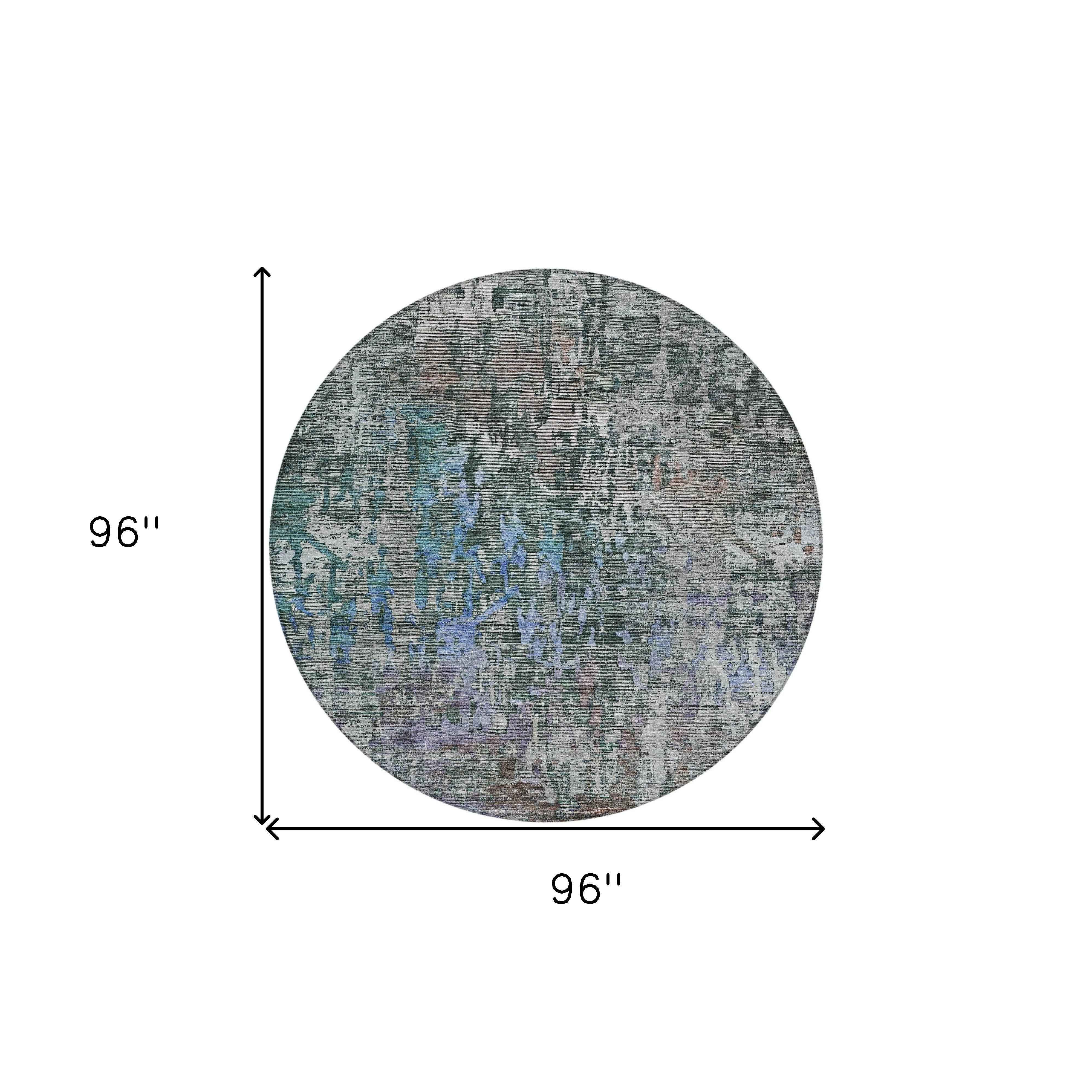 8' Fern Green Round Abstract Washable Indoor Outdoor Area Rug