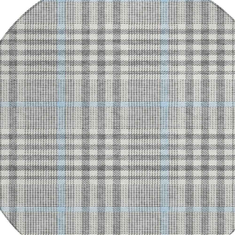 8' Gray Blue And Beige Round Plaid Washable Indoor Outdoor Area Rug - Skip to content