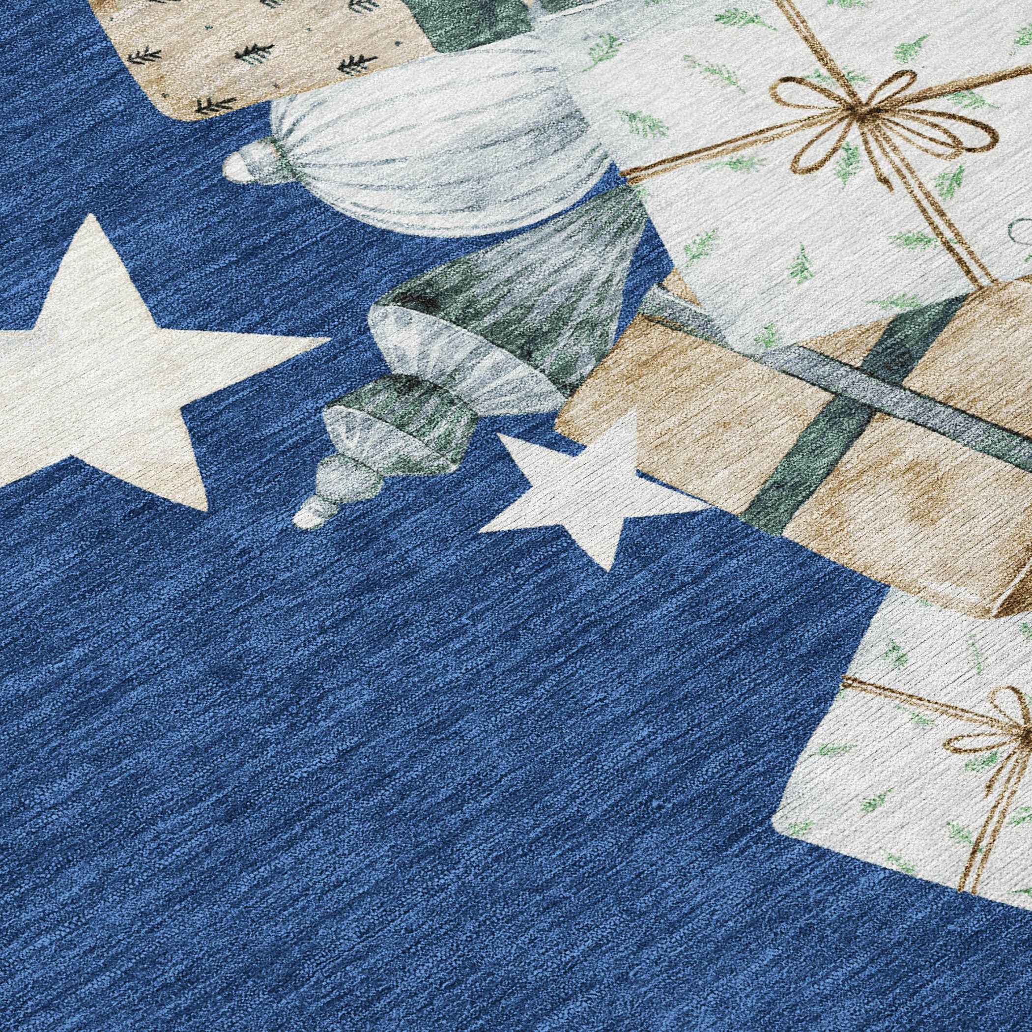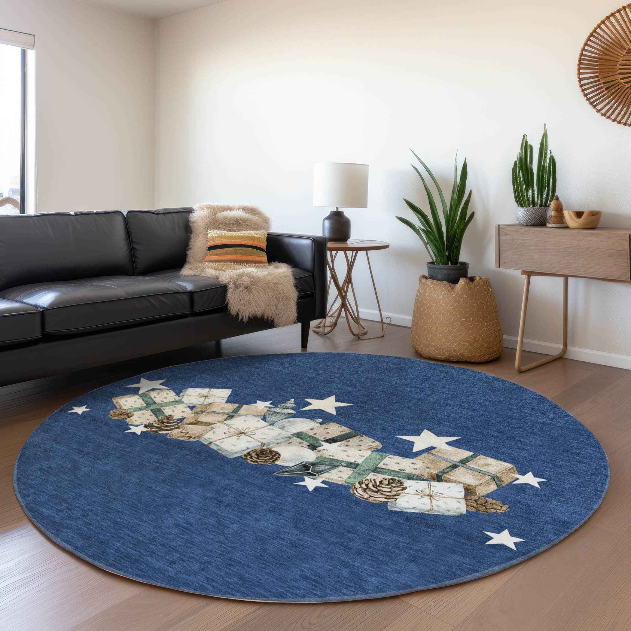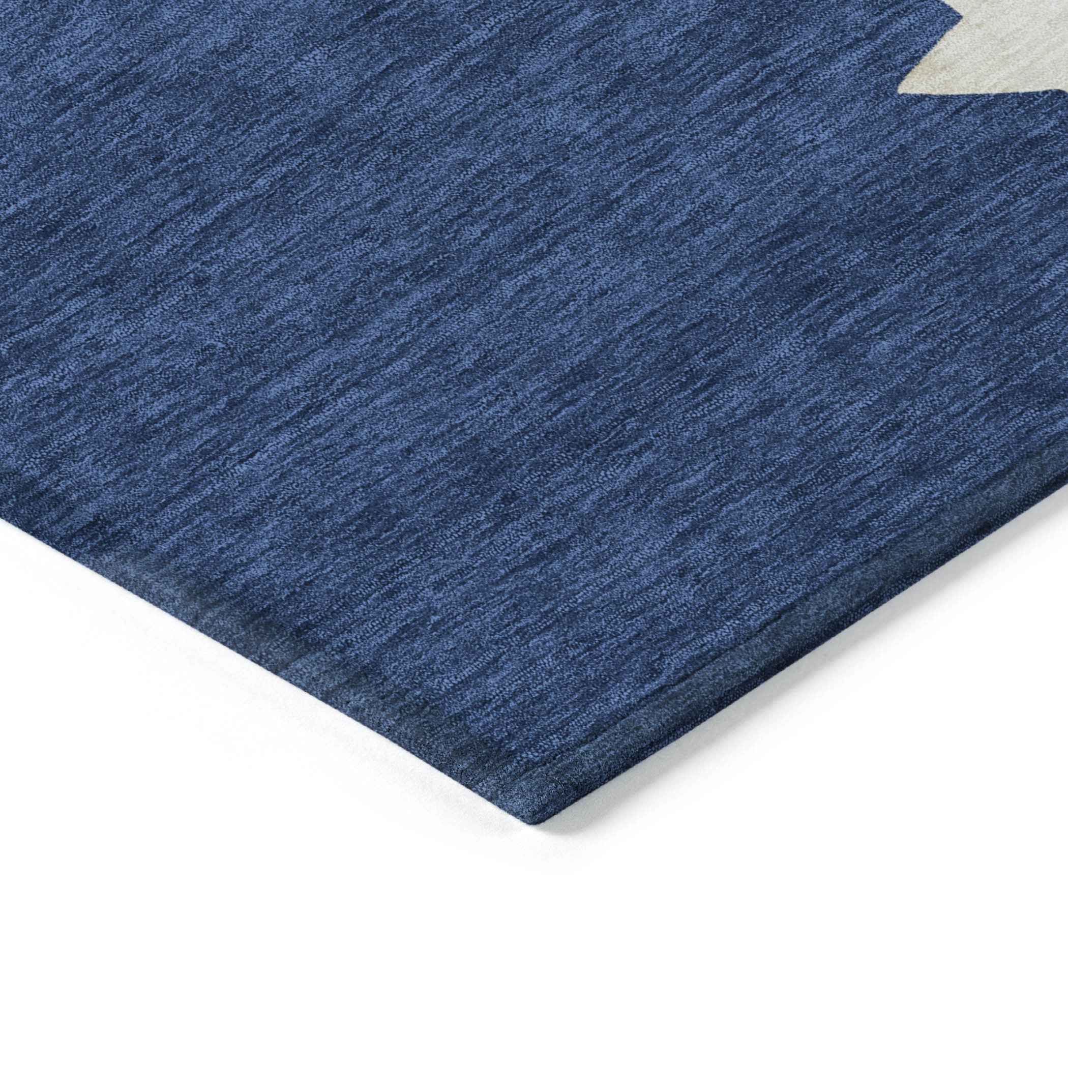 Set an inviting tone in your space with this 8-foot navy blue beige ivory and taupe round geometric washable indoor outdoor area rug. This geometric round shaped rug features a geometric pattern in navy blue, beige, ivory, and taupe that combines a good looking print with a unique and updated shape. The mix of shape, color, and design gives this rug refreshing visual interest. Ideal for outdoor spaces or high traffic areas with kids and pets, this rug is made from heavy duty polyester that is stain resistant to help repel water, dirt, and stains. Makes a great way to dress up your patio, porch, or poolside, but also works well as a durable and easy to maintain option in the kitchen, family room, or mudroom. 96-inch h x 96-inch w x 0.19-inch d.