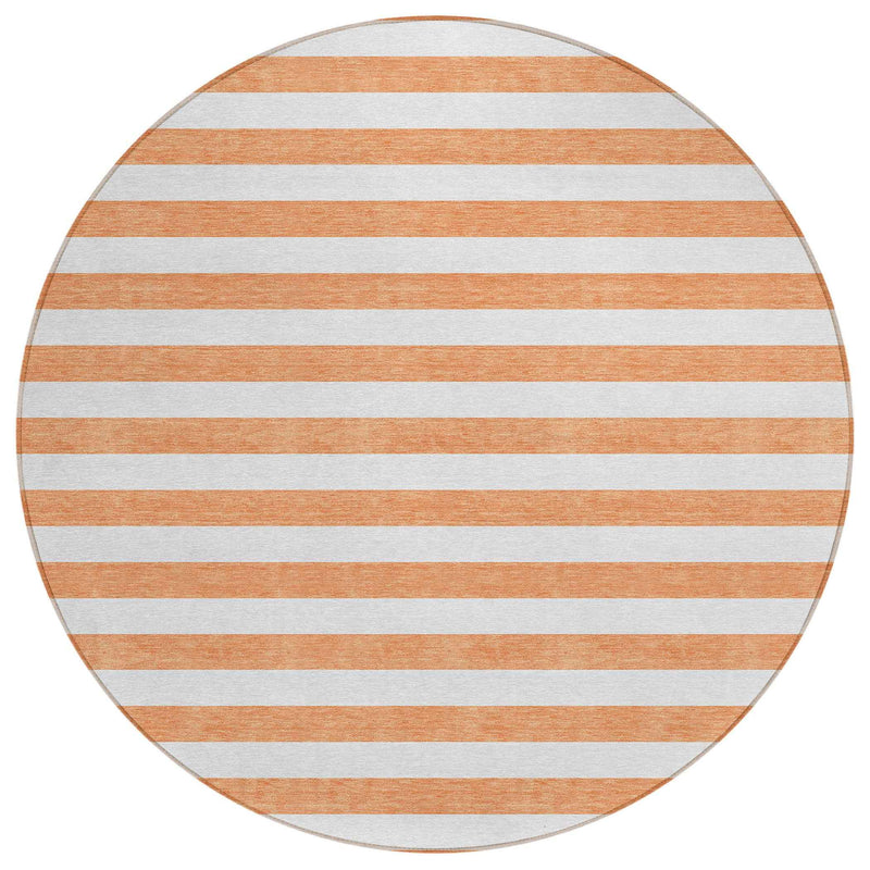 8' Round Salmon Round Striped Washable Non Skid Indoor Outdoor Area Rug