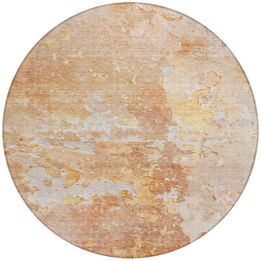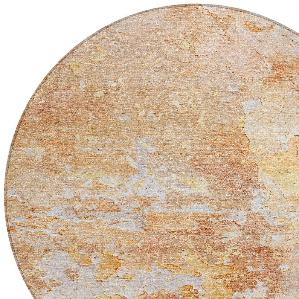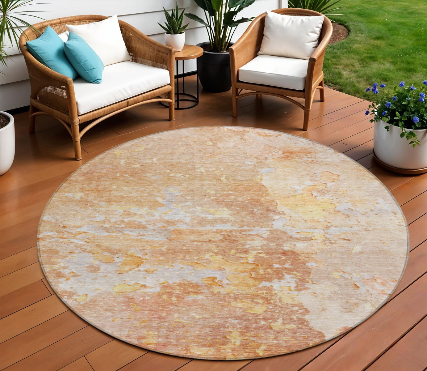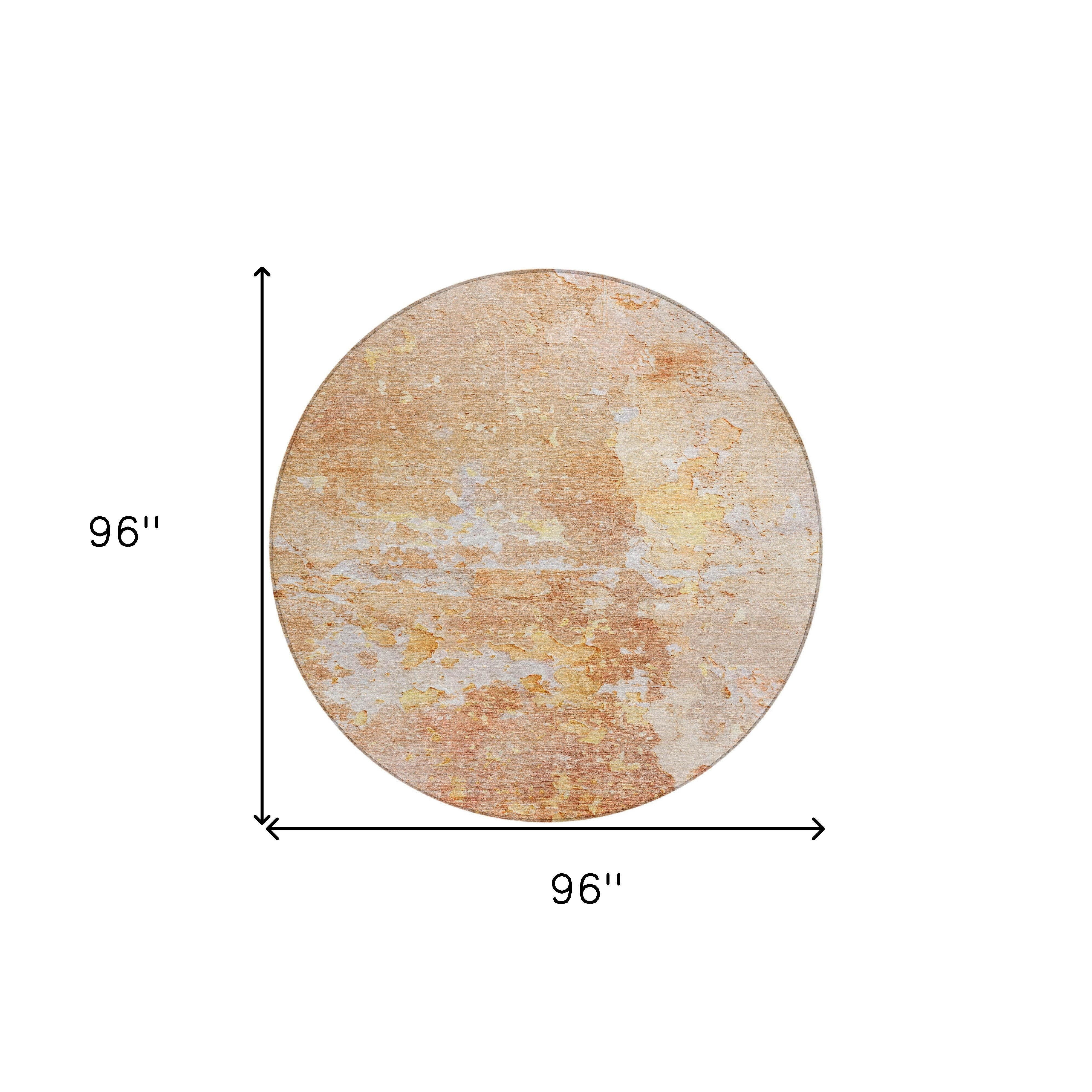 8' Salmon Round Abstract Washable Indoor Outdoor Area Rug