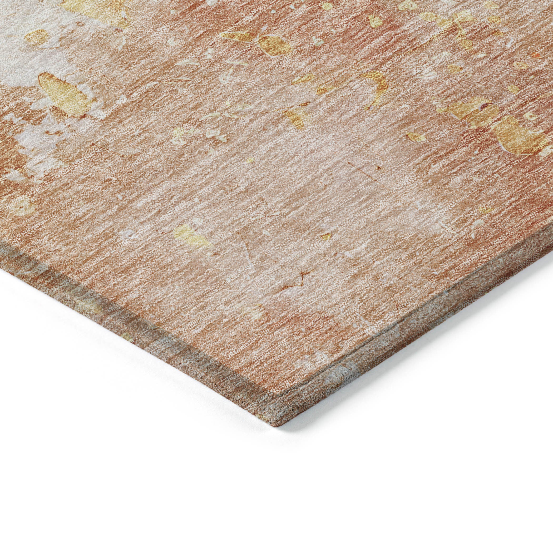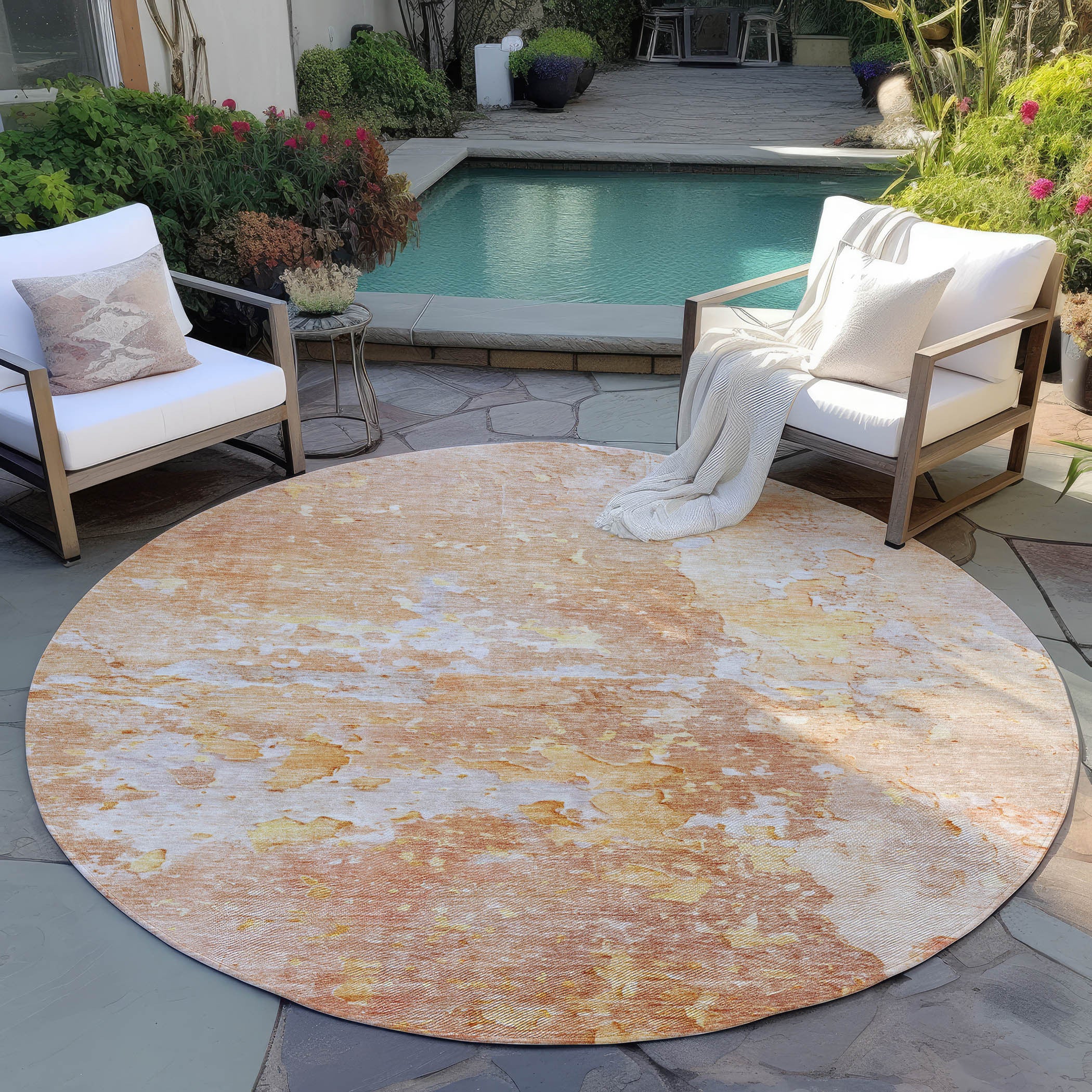 Add some artistry to your room with this 8-foot salmon round abstract washable indoor outdoor area rug. This geometric round shaped rug features a abstract pattern in salmon that combines a good looking print with a unique and updated shape. The mix of shape, color, and design gives this rug refreshing visual interest. Ideal for outdoor spaces or high traffic areas with kids and pets, this rug is made from heavy duty polyester that is stain resistant to help repel water, dirt, and stains. Makes a great way to dress up your patio, porch, or poolside, but also works well as a durable and easy to maintain option in the kitchen, family room, or mudroom. 96-inch h x 96-inch w x 0.19-inch d.