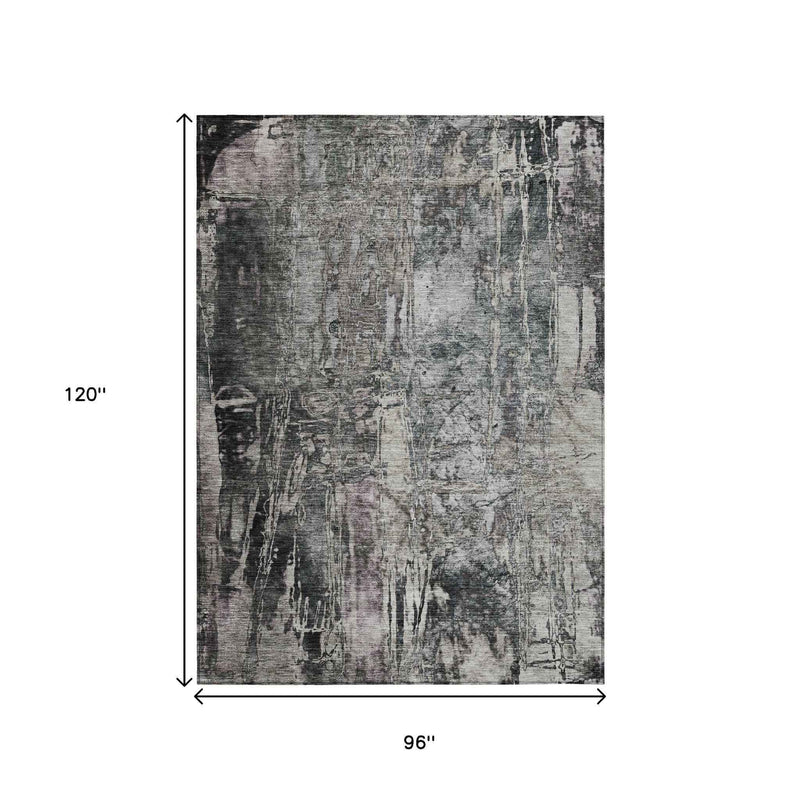 8' X 10' Gray And Silver Abstract Washable Indoor Outdoor Area Rug