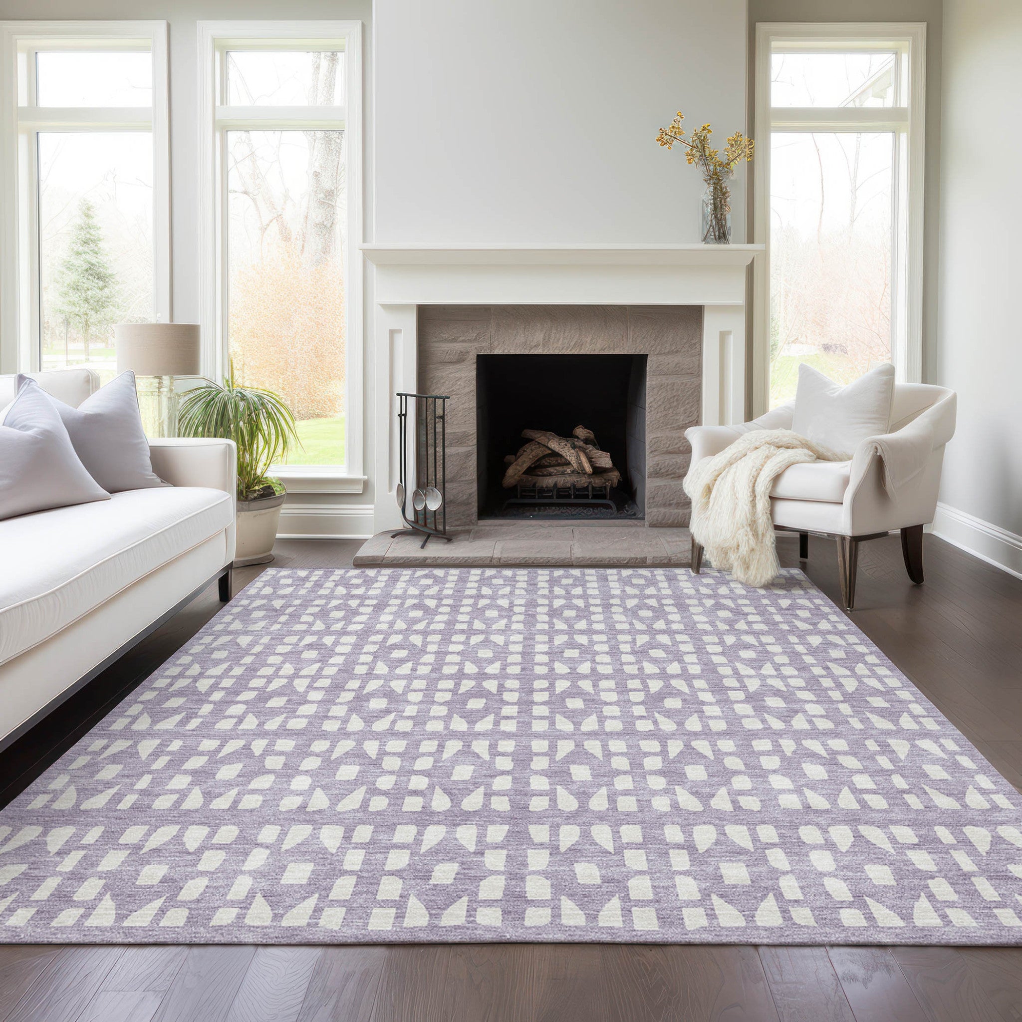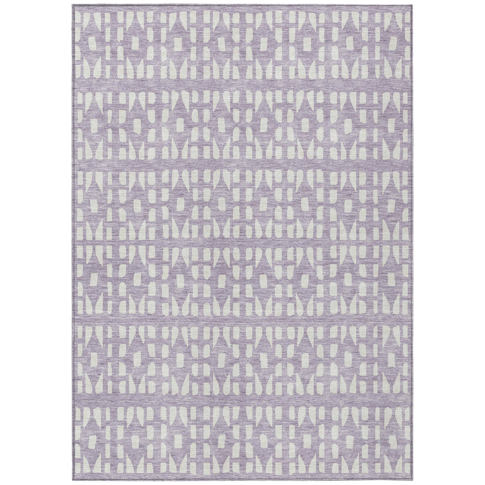 Set an inviting tone in your space with this 8-foot x 10-foot lavender and ivory geometric washable indoor outdoor area rug. This rectangle shaped rug features a geometric design that will work well both indoors or out. A classic shape marries with good looking design for your living room, hall, bedroom, porch, patio, or poolside. Ideal for outdoor spaces or high traffic areas with kids and pets, this rug is made from heavy duty polyester that is stain resistant to help repel water, dirt, and stains. Makes a great way to dress up your patio, porch, or poolside, but also works well as a durable and easy to maintain option in the kitchen, family room, or mudroom. 96-inch h x 120-inch w x 0.19-inch d.