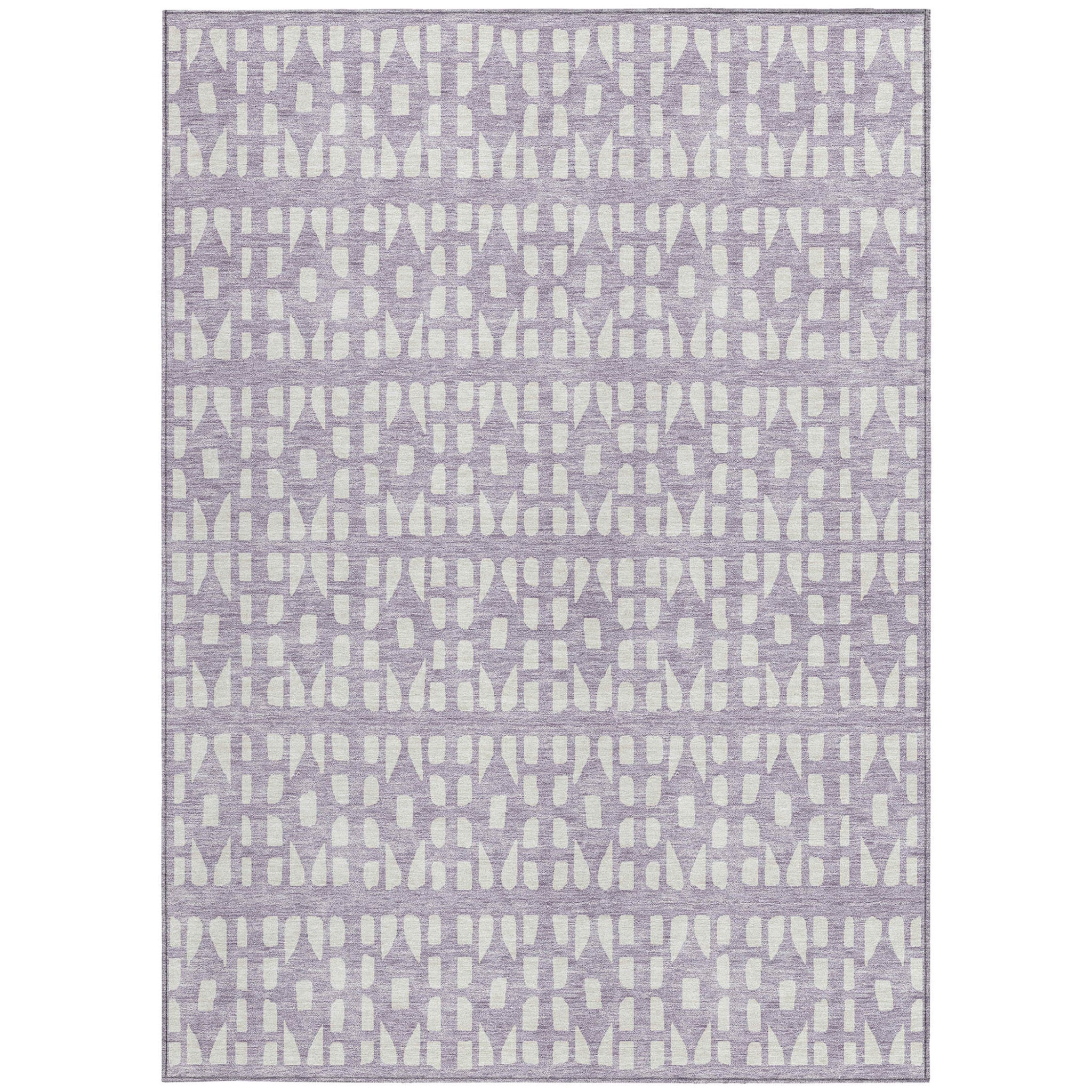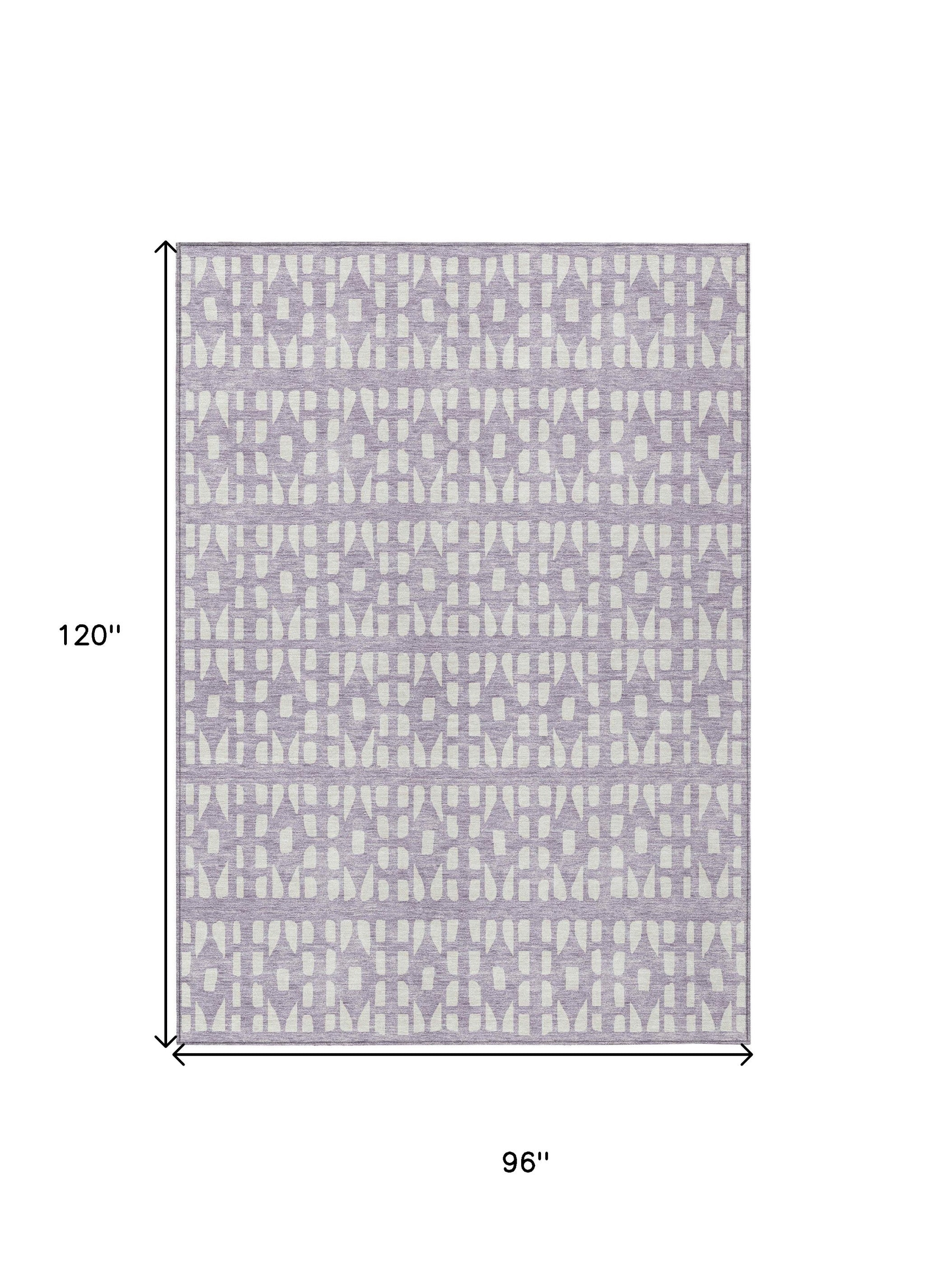 8' X 10' Lavender And Ivory Geometric Washable Indoor Outdoor Area Rug