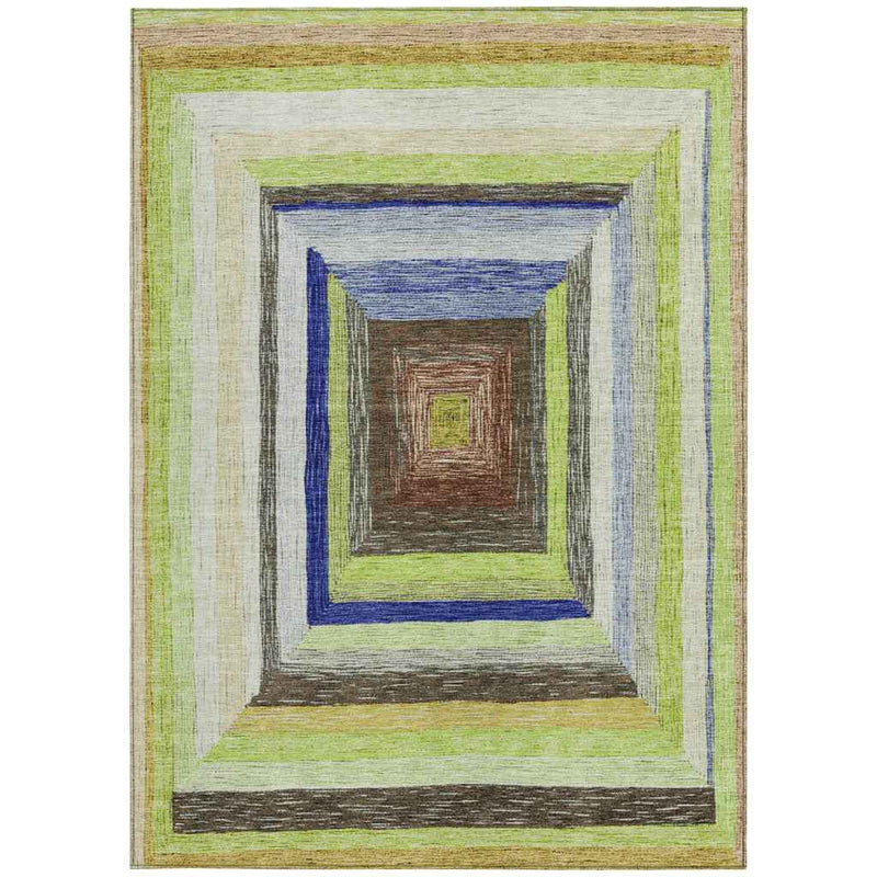 8' X 10' Lime Green Navy Blue And Brown Geometric Washable Indoor Outdoor Area Rug