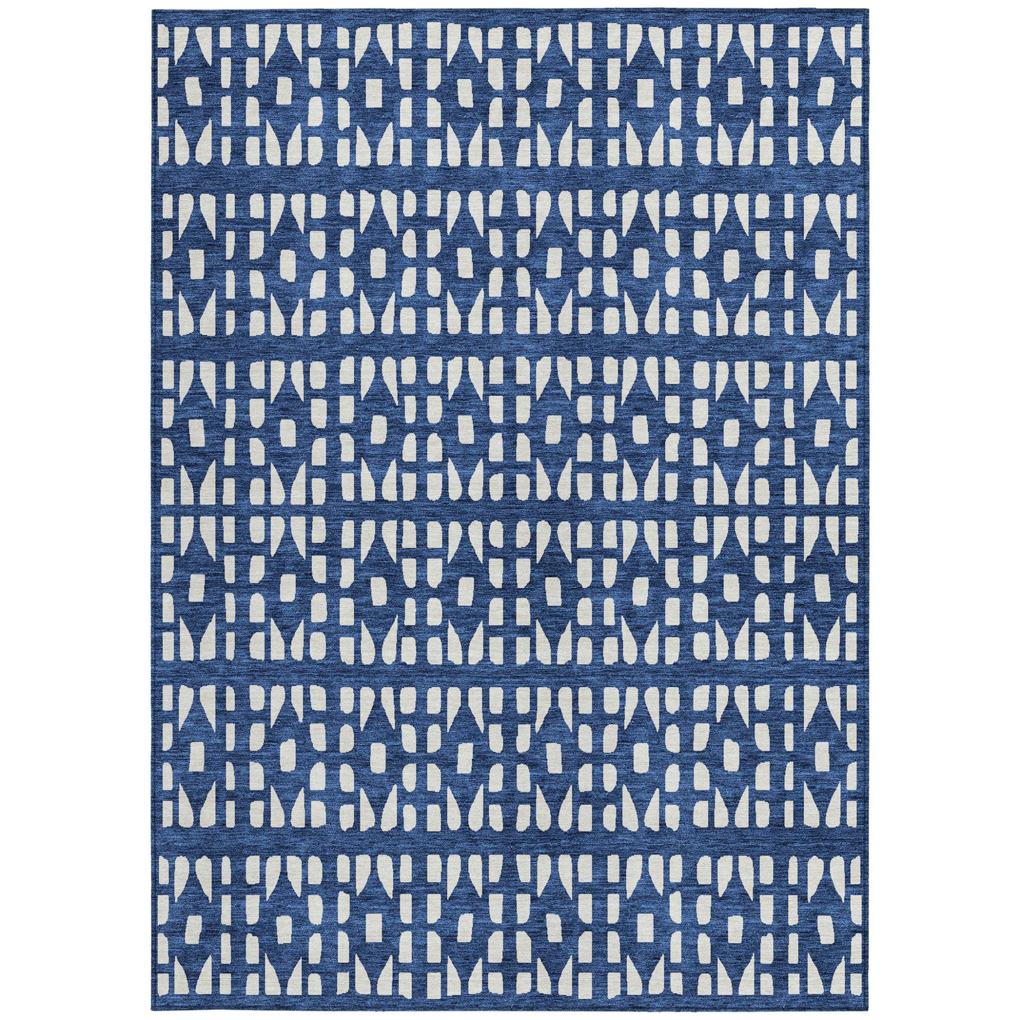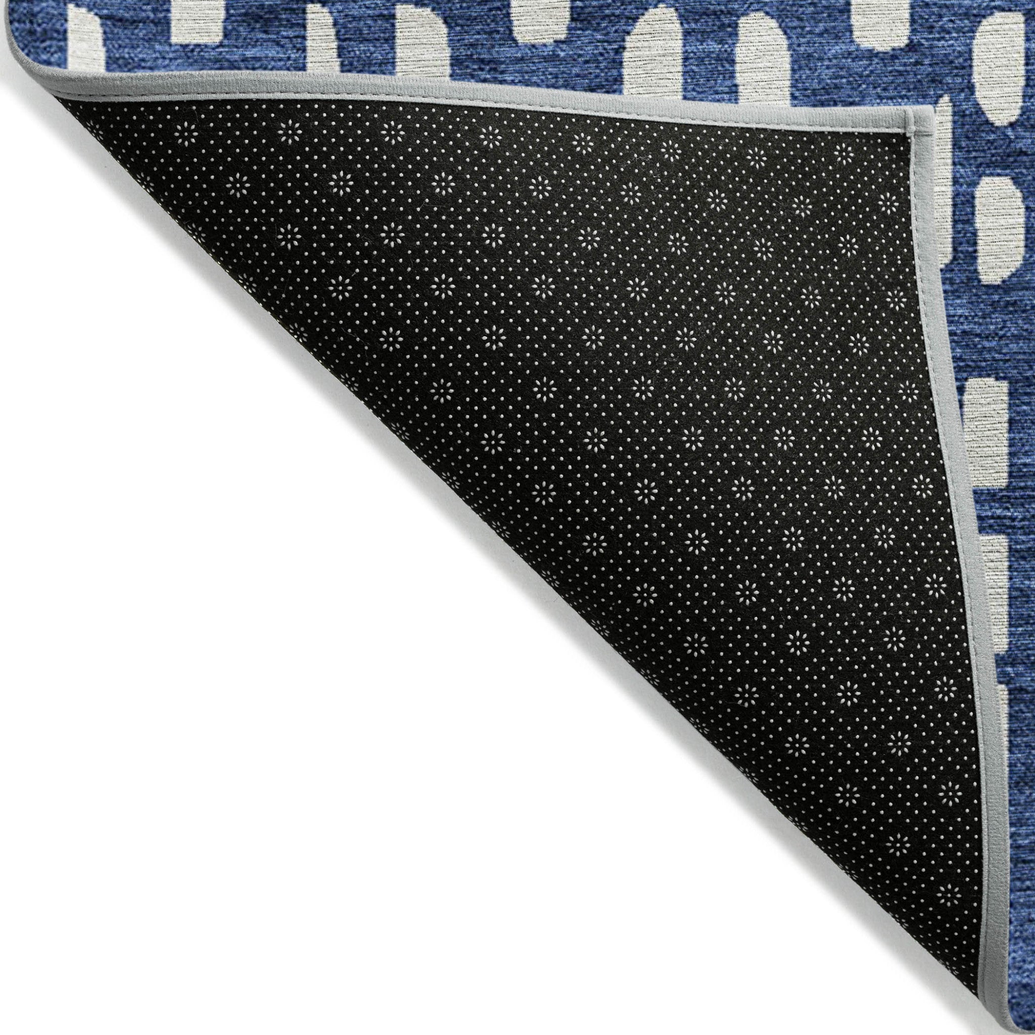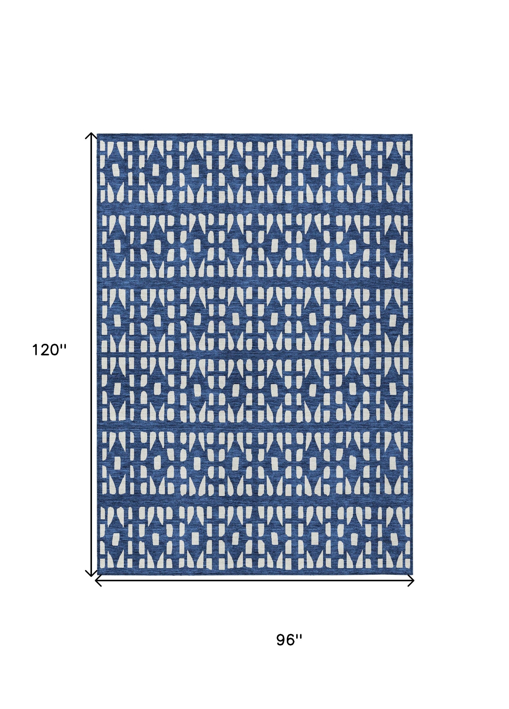 8' X 10' Navy Blue And Ivory Geometric Washable Indoor Outdoor Area Rug