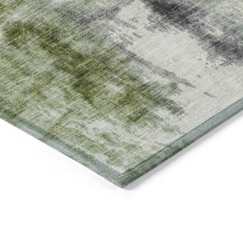 8' X 10' Olive Green And Ivory Abstract Washable Indoor Outdoor Area Rug
