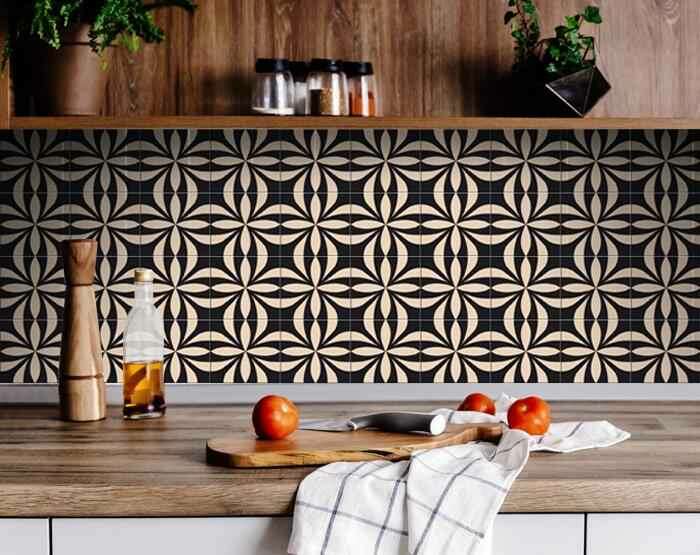 8" X 8" Intertwined Black And Cream Peel And Stick Removable Tiles