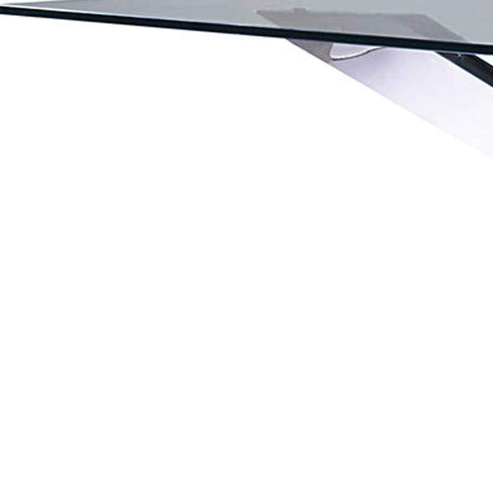 87" Clear and Silver Glass and Metal Cross Leg Base Dining Table