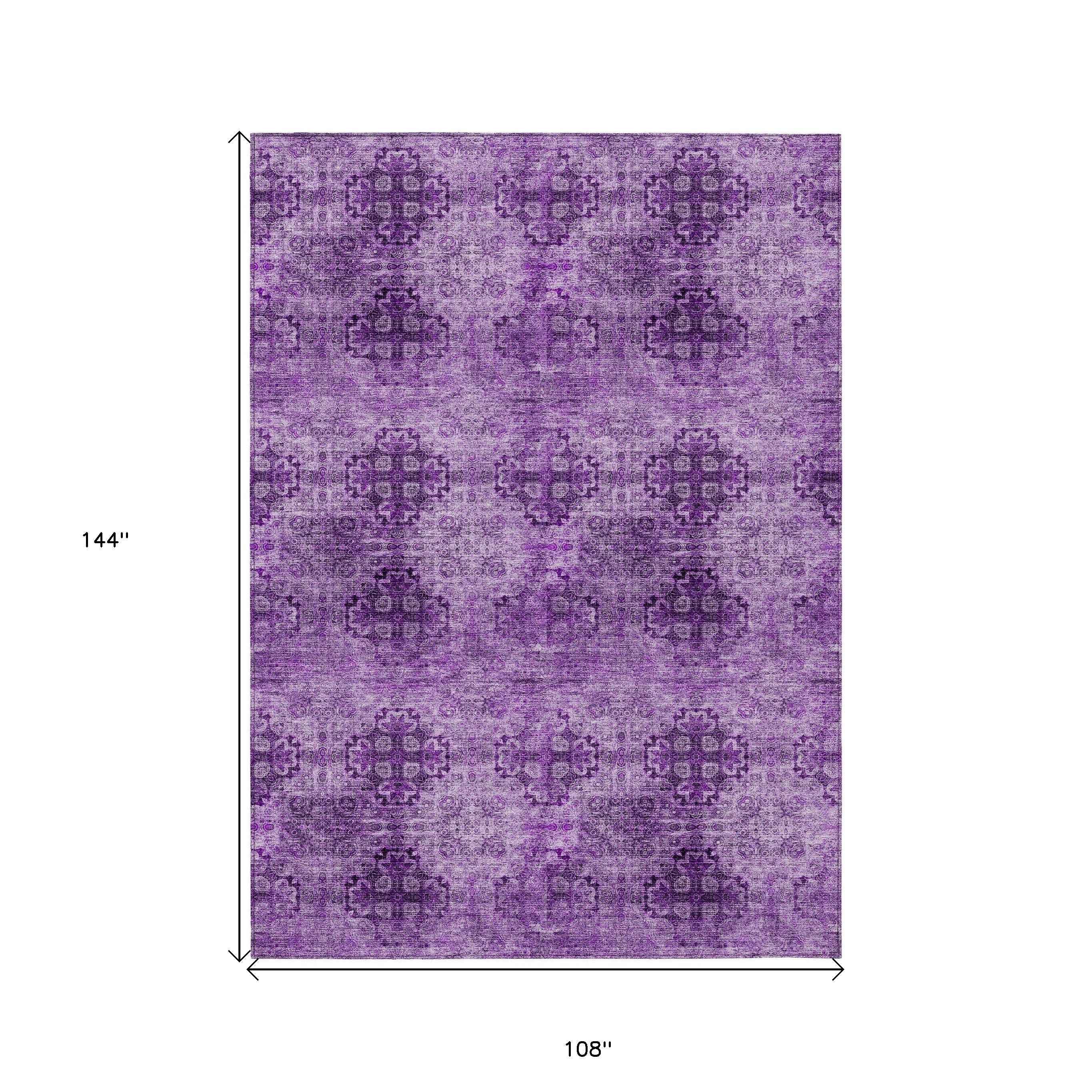 Set an inviting tone in your space with this 9-foot x 12-foot eggplant floral medallion washable stain resistant non skid indoor outdoor area rug. This rectangle shaped rug features a floral medallion design in eggplant to give it visual interest. A classic shape marries with good looking design for your space ideal for spaces with kids and pets, this rug is stain resistant to help repel stains and spilled liquids. Area rugs help to give warmth and sense of home to your space. 108-inch H x 144-inch W x 0.19-inch D