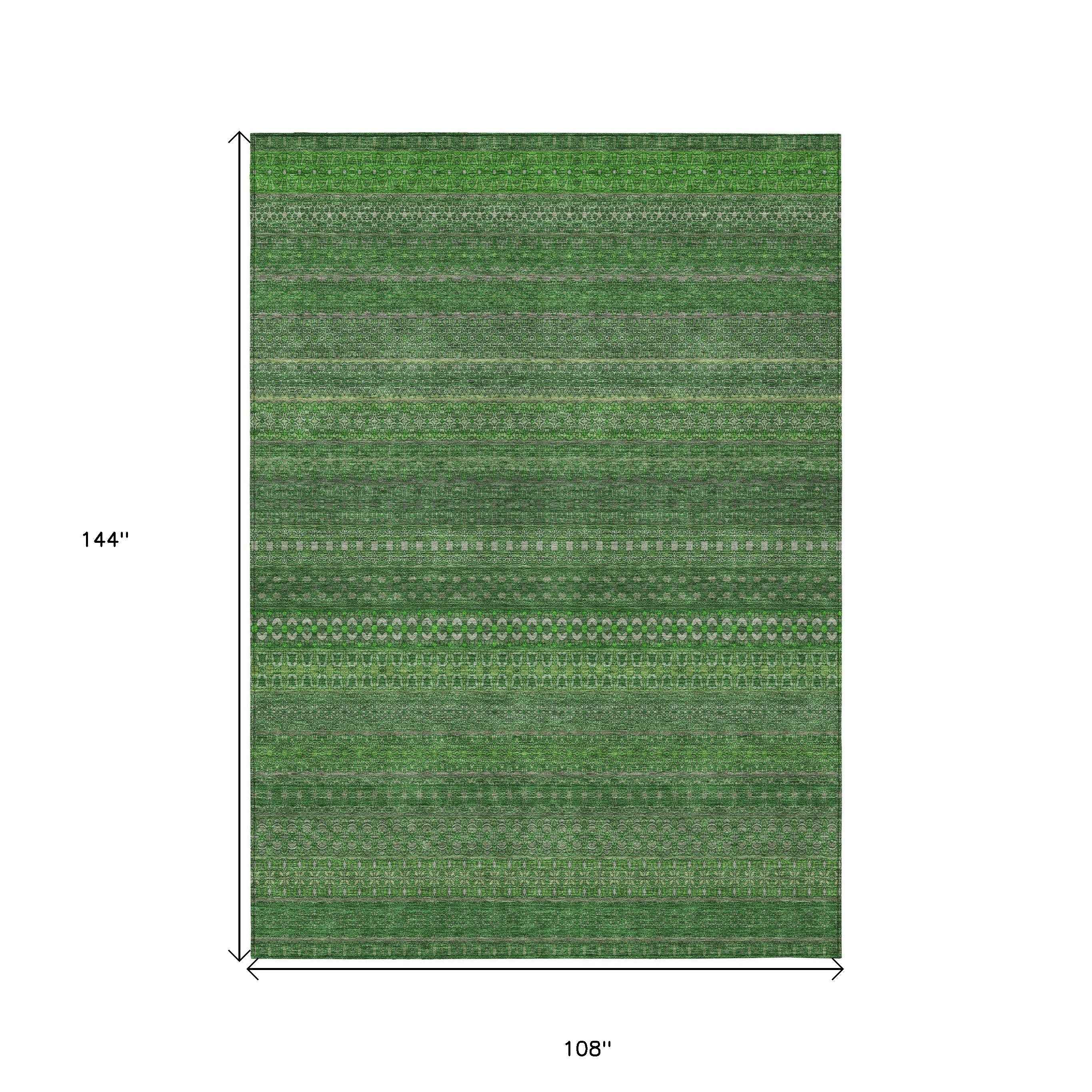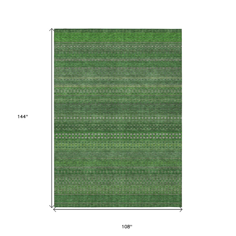 9' X 12' Fern Green Striped Washable Non Skid Indoor Outdoor Area Rug