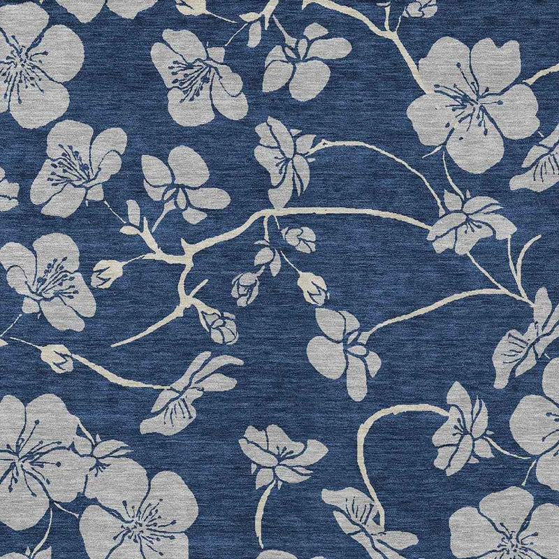9' X 12' Navy Blue And Gray Floral Washable Indoor Outdoor Area Rug