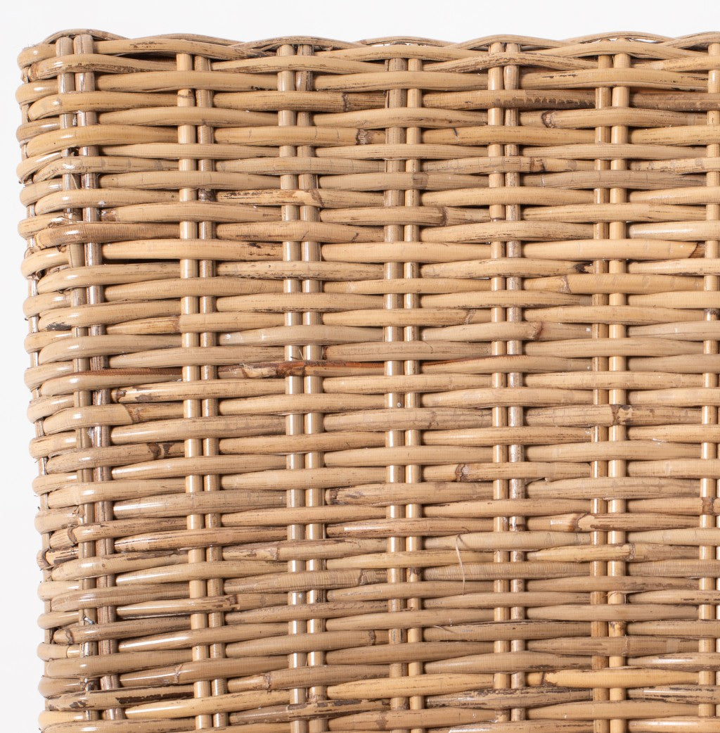 Out with the old and in with the new, this set of two cream and natural rattan dining arm chairs can perfectly suit any dining table. Visually having natural materials in your home is shown to increase your mood and vibe and visually brings neutrality and balance to your space. Handcrafted from Kubo rattan these sturdy and good looking chairs are a great casually elegant way to set your space. Each comes with a thick, neutral, creamy white herringbone design soft cushion, made from 100% cotton, for a cozy and inviting feel. 34.25-inch H x 26.8-inch W x 24.8-inch D