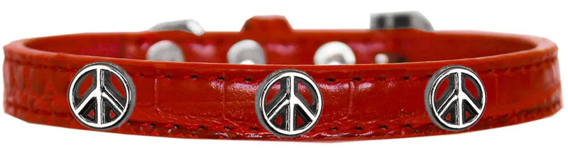 Peace Sign Widget Croc Dog Collar Red Size 20