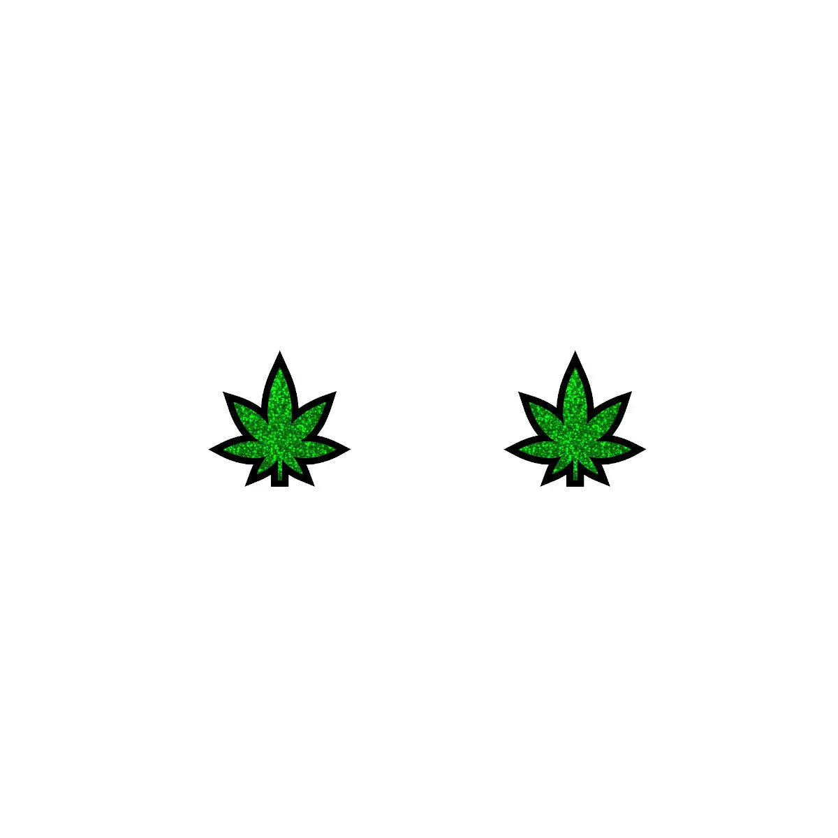 These green sparkly glitter marijuana leaf weed earrings by Wood Rocket are the perfect accessory. They are super fun and stylish! People can wear them or give them as a gift. Perfect for bachelorette parties, a night out, or some weird Christmas thing. Black nickel plated with sterling silver posts.