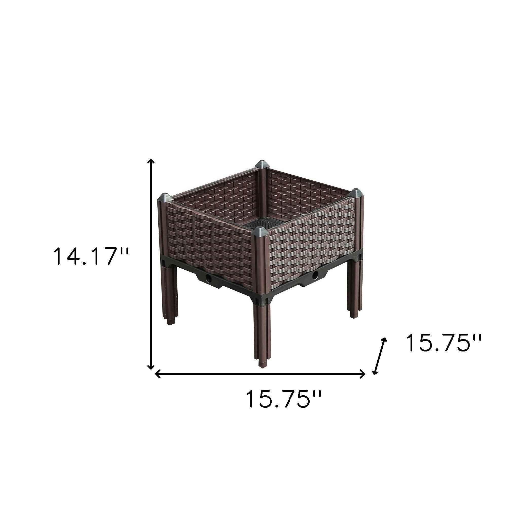 16" X 16" Dark Brown Heavy Duty Plastic Square Self Watering Raised Garden Bed