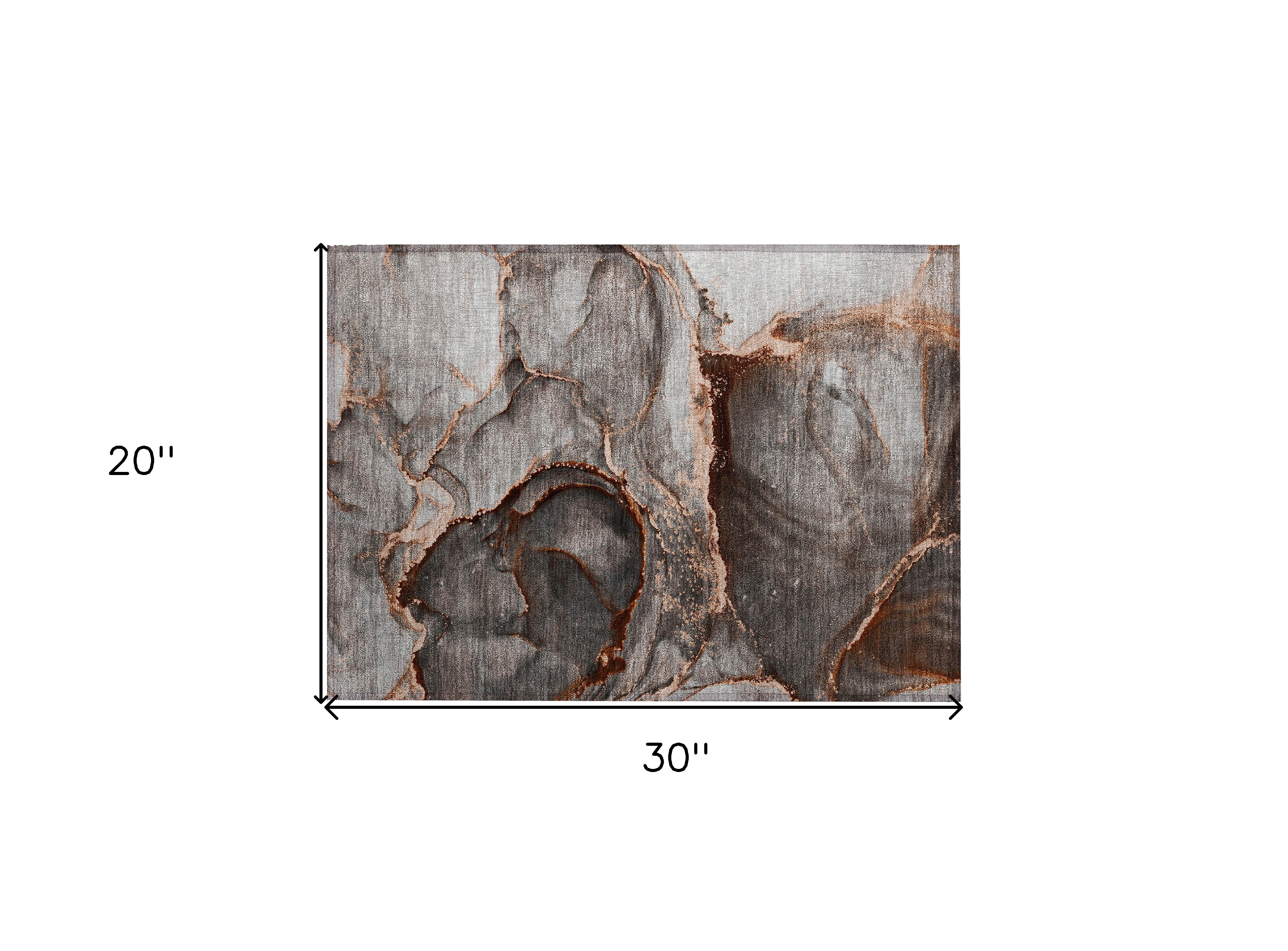 2' X 3' Peach Abstract Washable Non Skid Indoor Outdoor Area Rug