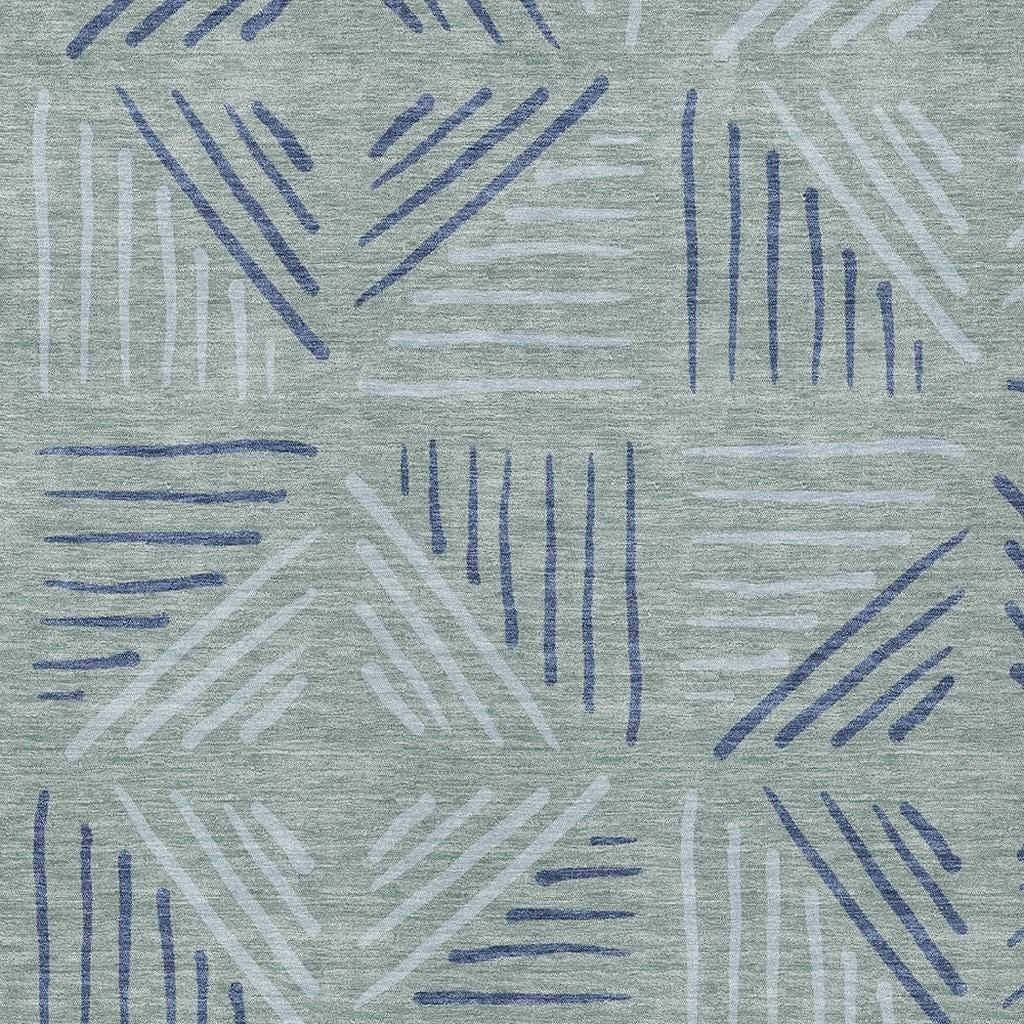 3' X 5' Aqua And Blue Geometric Washable Indoor Outdoor Area Rug