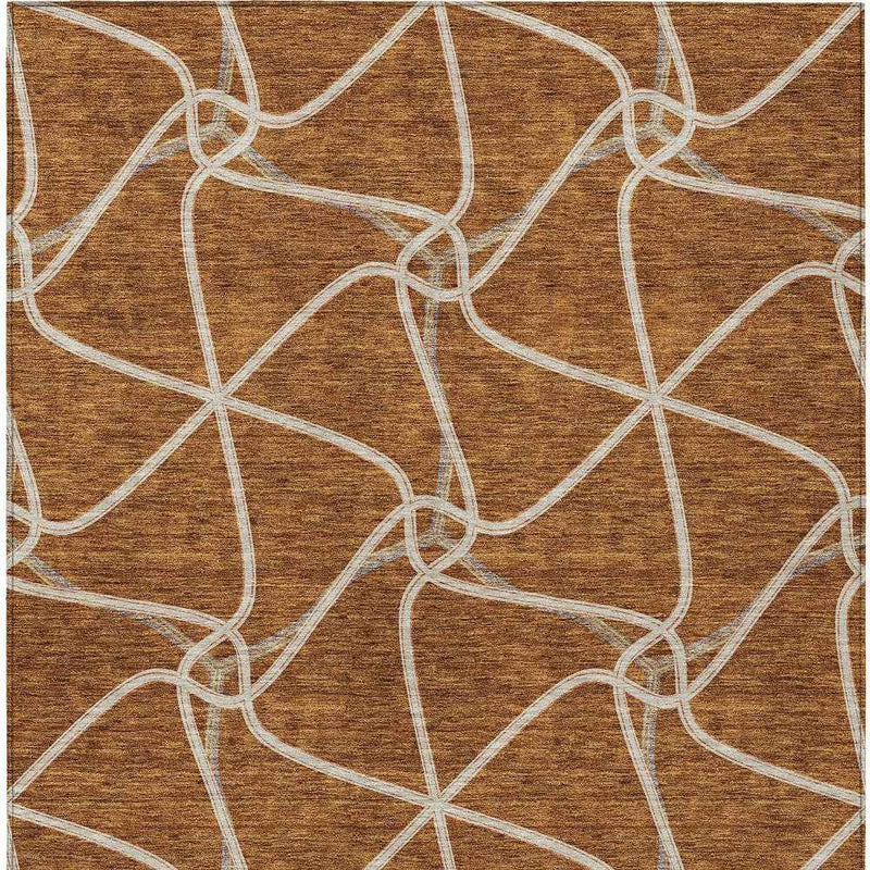3' X 5' Orange And Ivory Geometric Washable Indoor Outdoor Area Rug