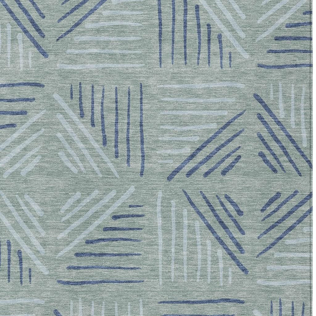5' X 8' Aqua And Blue Geometric Washable Indoor Outdoor Area Rug
