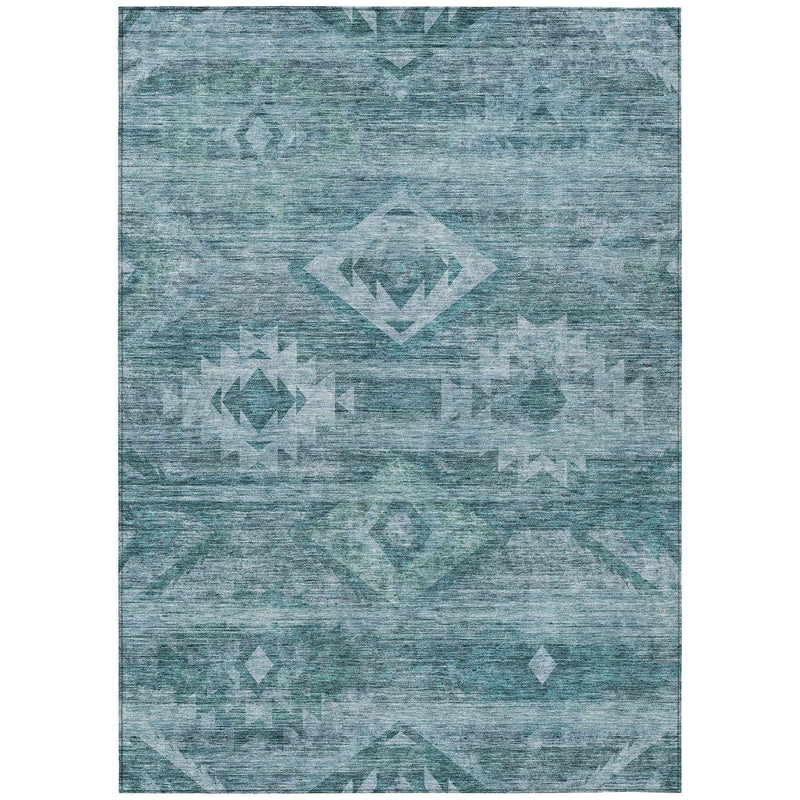 5' X 8' Teal Blue And Aqua Southwestern Washable Indoor Outdoor Area Rug