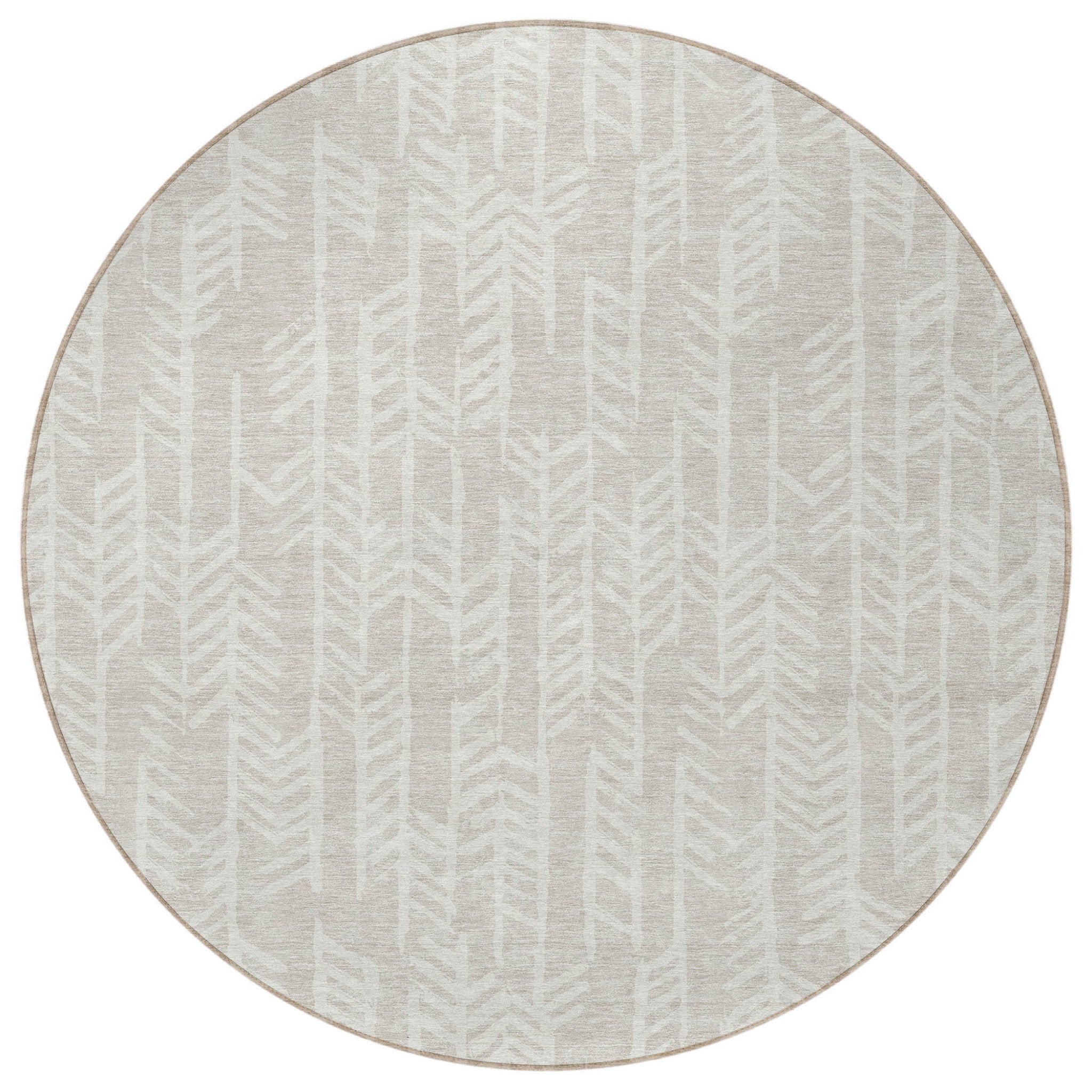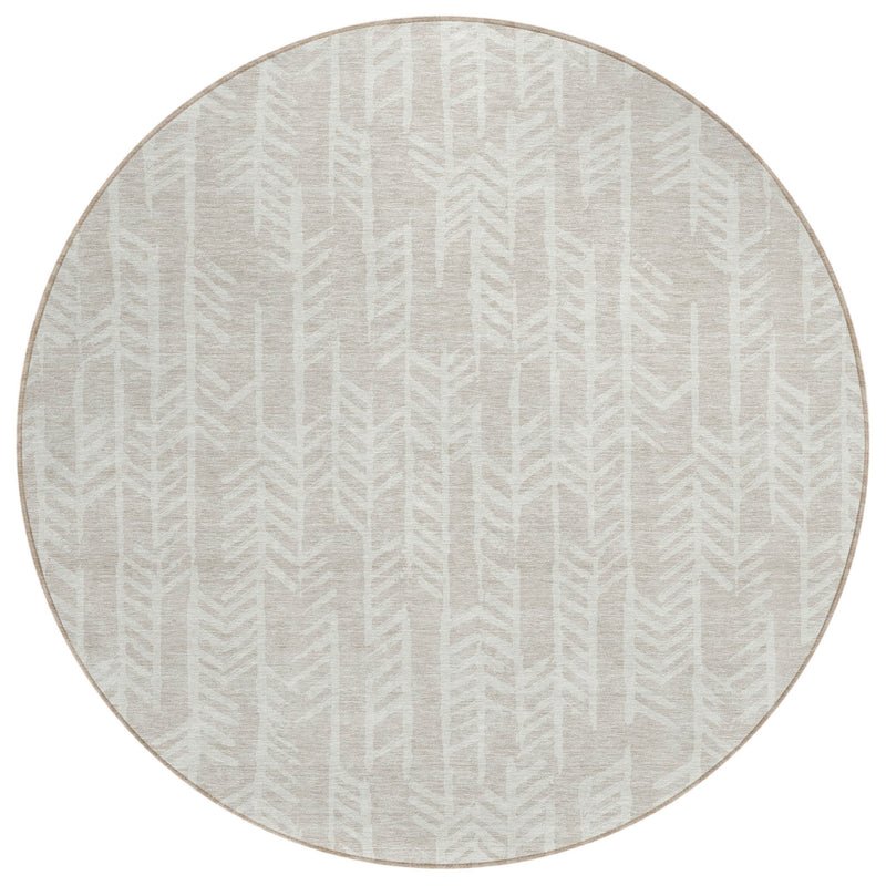 8' Beige And Ivory Round Tribal Washable Indoor Outdoor Area Rug