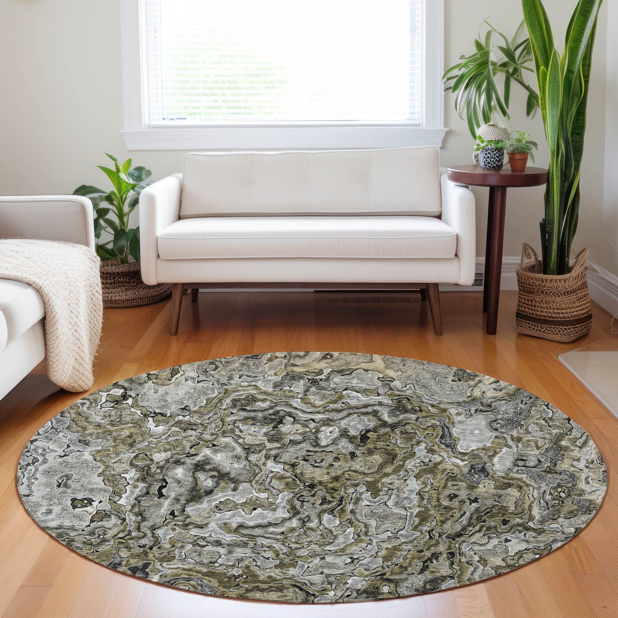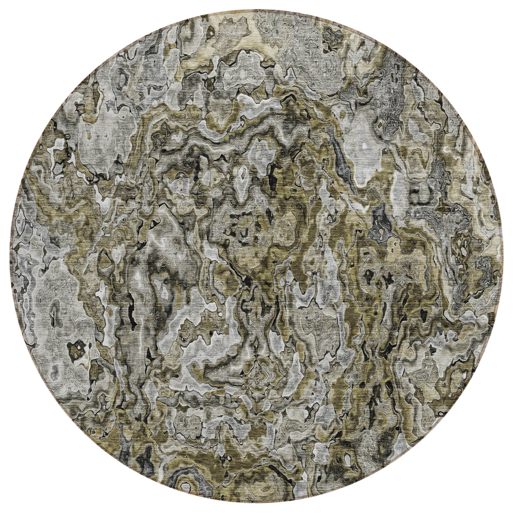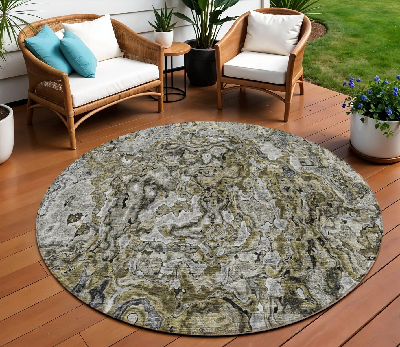 8' Brown Beige And Tan Round Abstract Washable Indoor Outdoor Area Rug