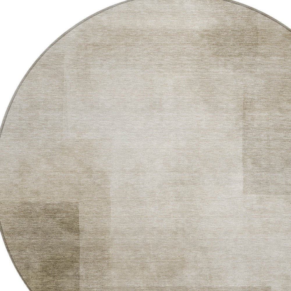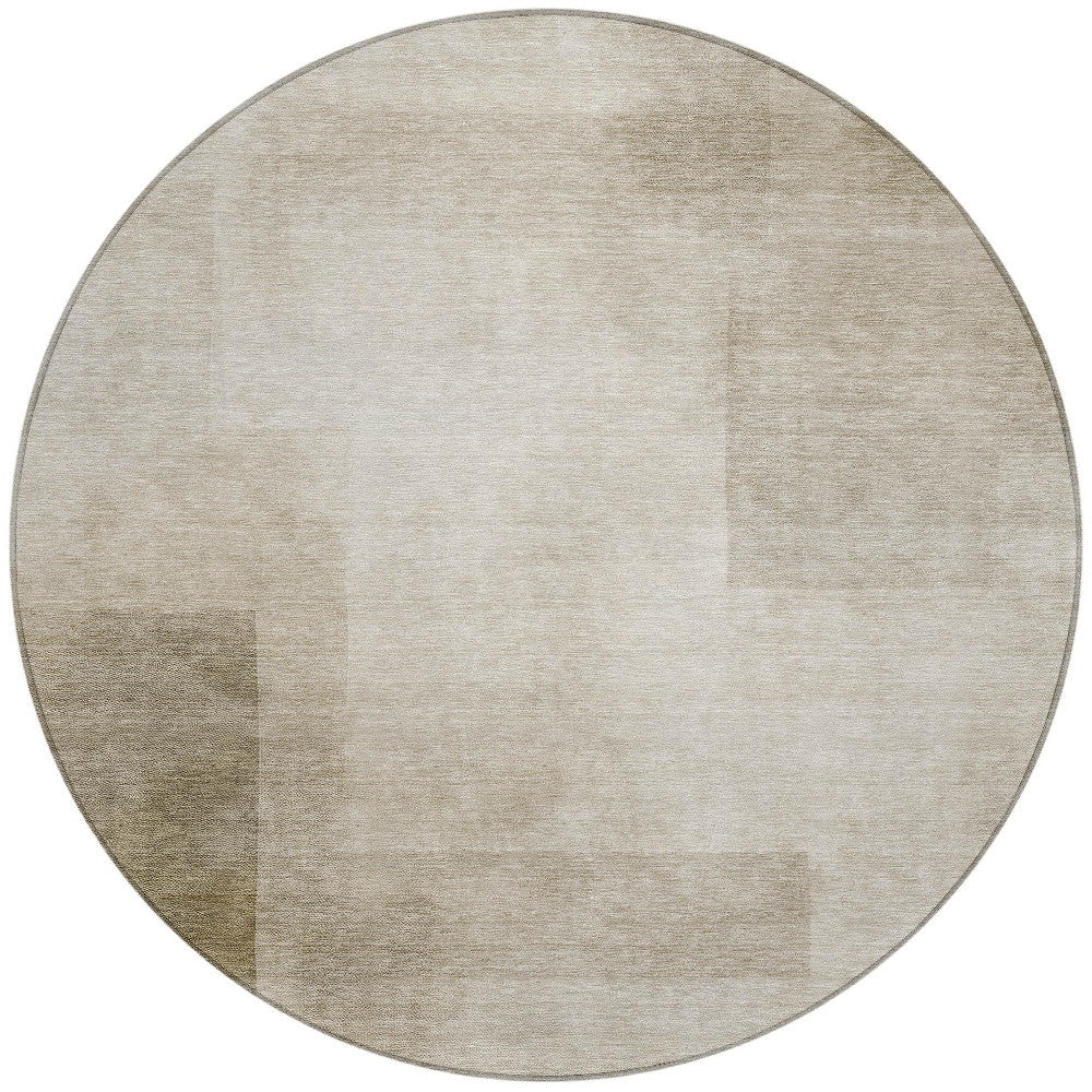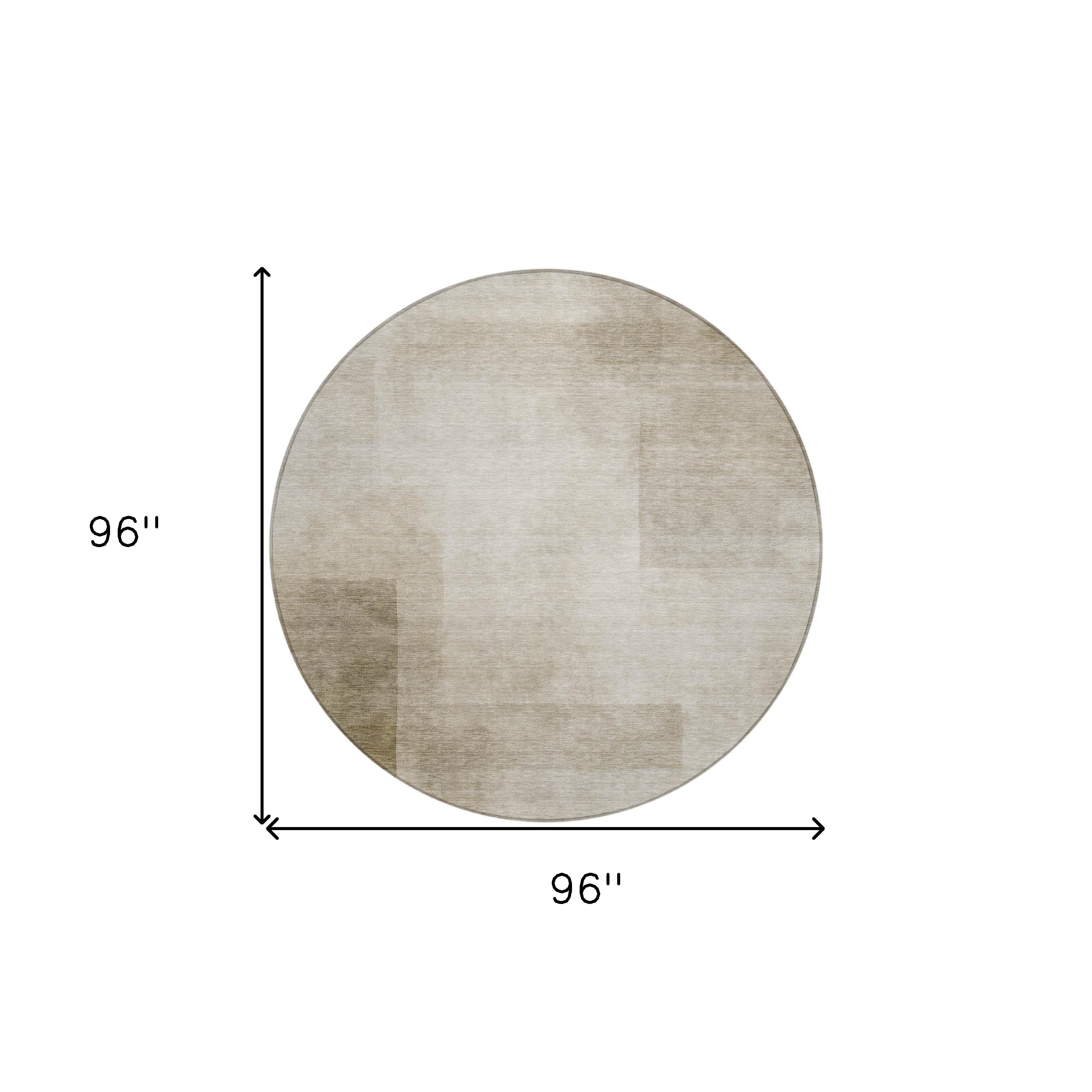 8' Khaki Round Geometric Washable Indoor Outdoor Area Rug