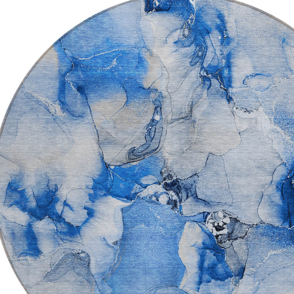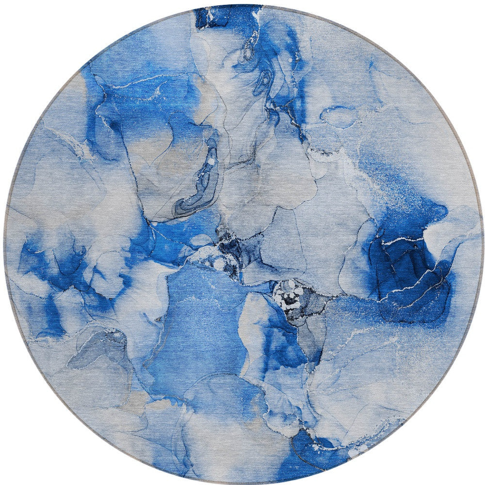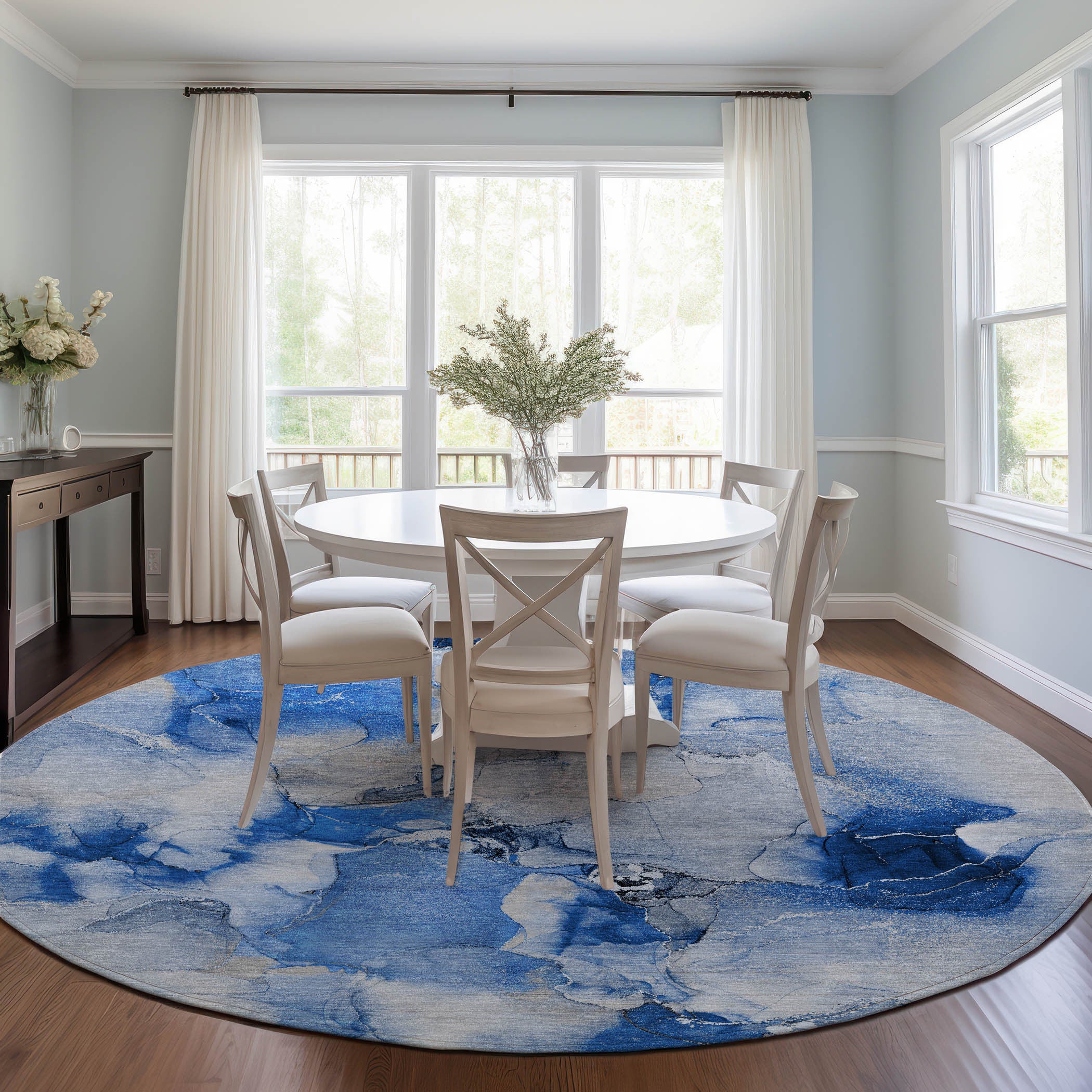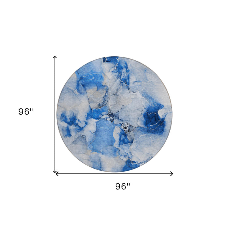 8' Navy Blue Round Abstract Washable Indoor Outdoor Area Rug