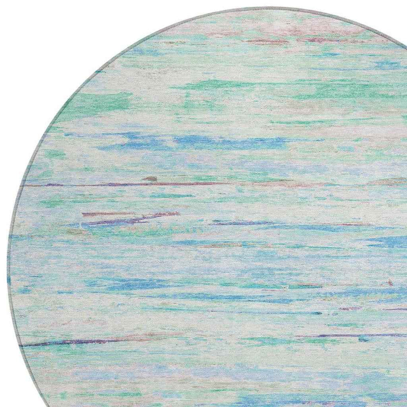 8' Teal Blue And Ivory Round Abstract Washable Indoor Outdoor Area Rug