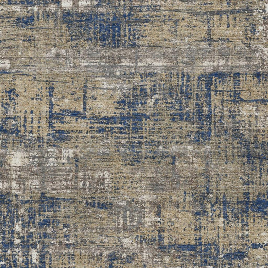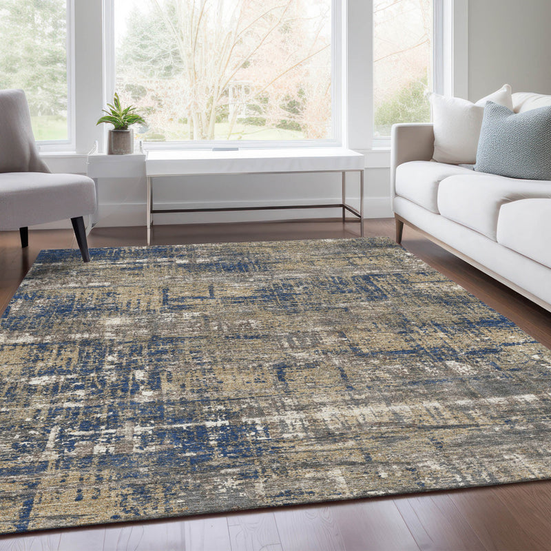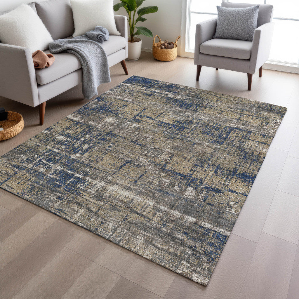 8' X 10' Navy Blue And Beige Geometric Washable Indoor Outdoor Area Rug